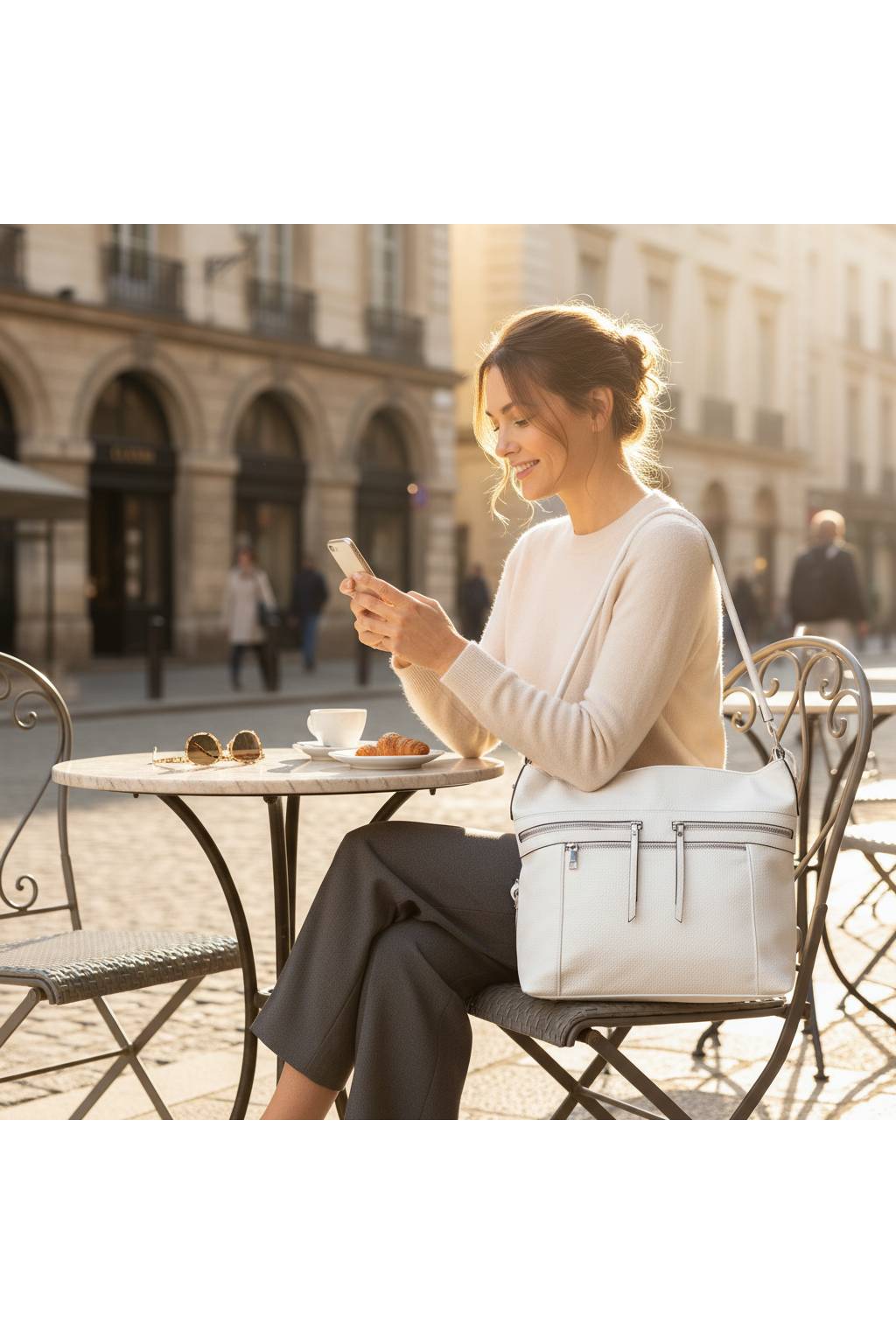 Elegantní a zároveň maximálně praktická dámská kabelka typu hobo, která se krásně přizpůsobí postavě a hodí se na každý den. Díky promyšlenému členění a několika kapsám na zip budete mít ve věcech pořádek – mobil, klíče i peněženku vytáhnete během chvíle.