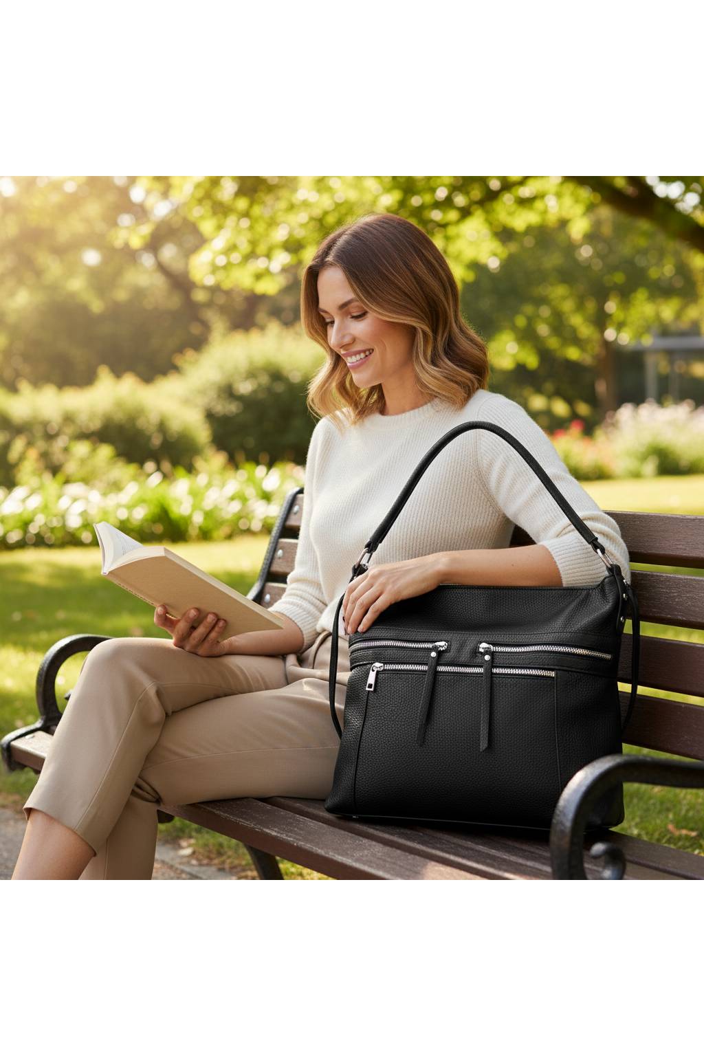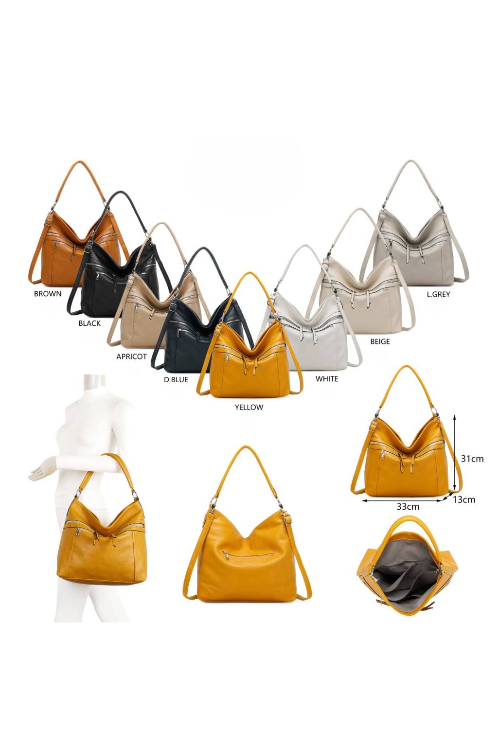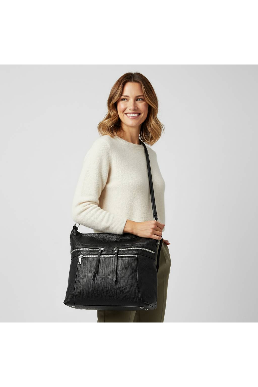 Elegantní a zároveň maximálně praktická dámská kabelka typu hobo, která se krásně přizpůsobí postavě a hodí se na každý den. Díky promyšlenému členění a několika kapsám na zip budete mít ve věcech pořádek – mobil, klíče i peněženku vytáhnete během chvíle.