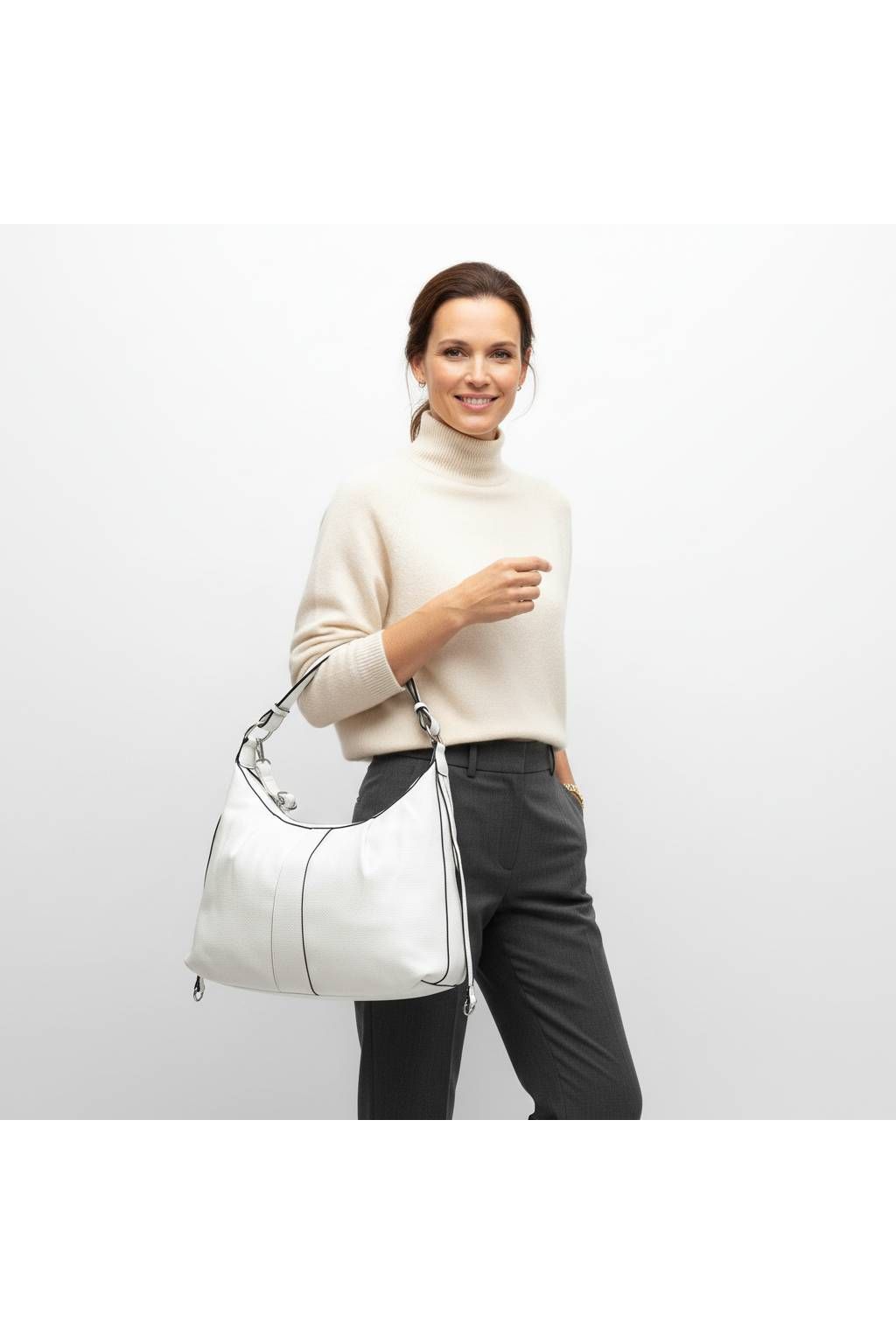 Tato dámská kabelka je ideální volbou pro ženy, které chtějí spojit pohodlí, styl a praktičnost v jednom kousku. Díky měkčímu tvaru a modernímu designu působí elegantně, ale zároveň uvolněně – skvěle se hodí na každodenní nošení do města, do práce i na volný čas.