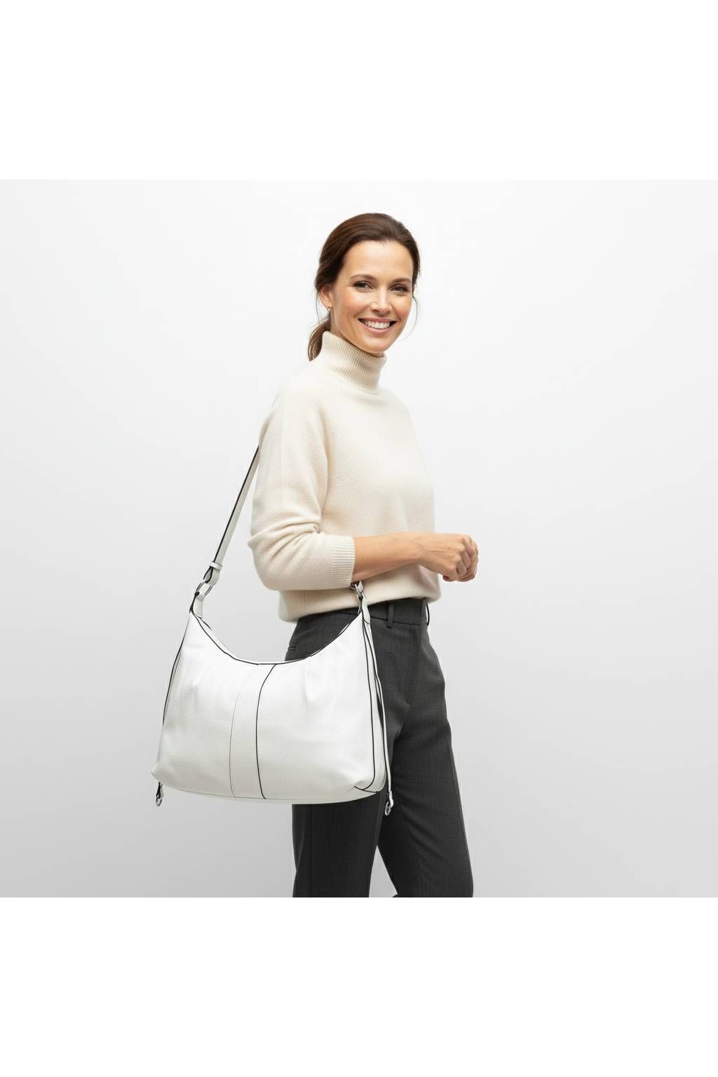 Kabelku můžete pohodlně nosit na rameni nebo jako crossbody díky nastavitelnému popruhu. Prostorný interiér nabízí dostatek místa na vše potřebné – peněženku, mobil, klíče i drobnosti. Vnitřní členění pomáhá udržet přehled a pořádek po celý den.