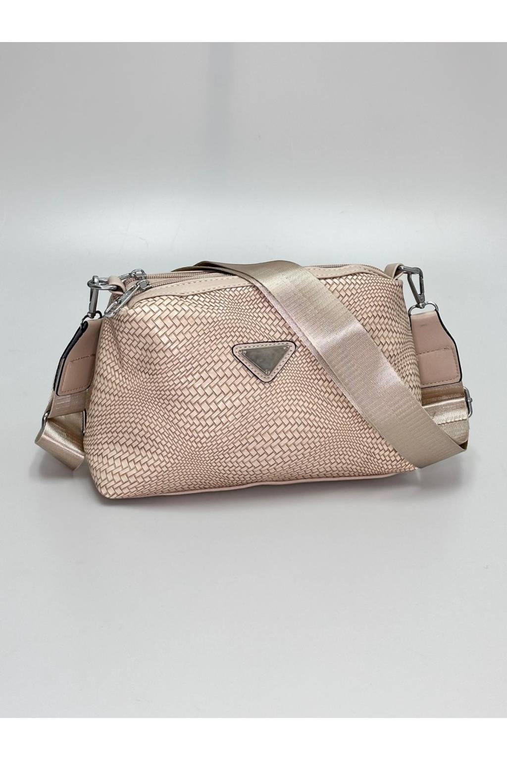 Dámská crossbody kabelka v elegantním designu s propracovaným pleteným vzorem na přední straně. Uzavírání na zip poskytuje bezpečnost, uvnitř jsou praktické přihrádky pro uspořádání věcí. Kabelka má nastavitelný popruh pro pohodlné nošení a ozdobnou třásňovou přívěsku, která jí dodává stylový vzhled. Ideální pro každodenní nošení i speciální příležitosti.