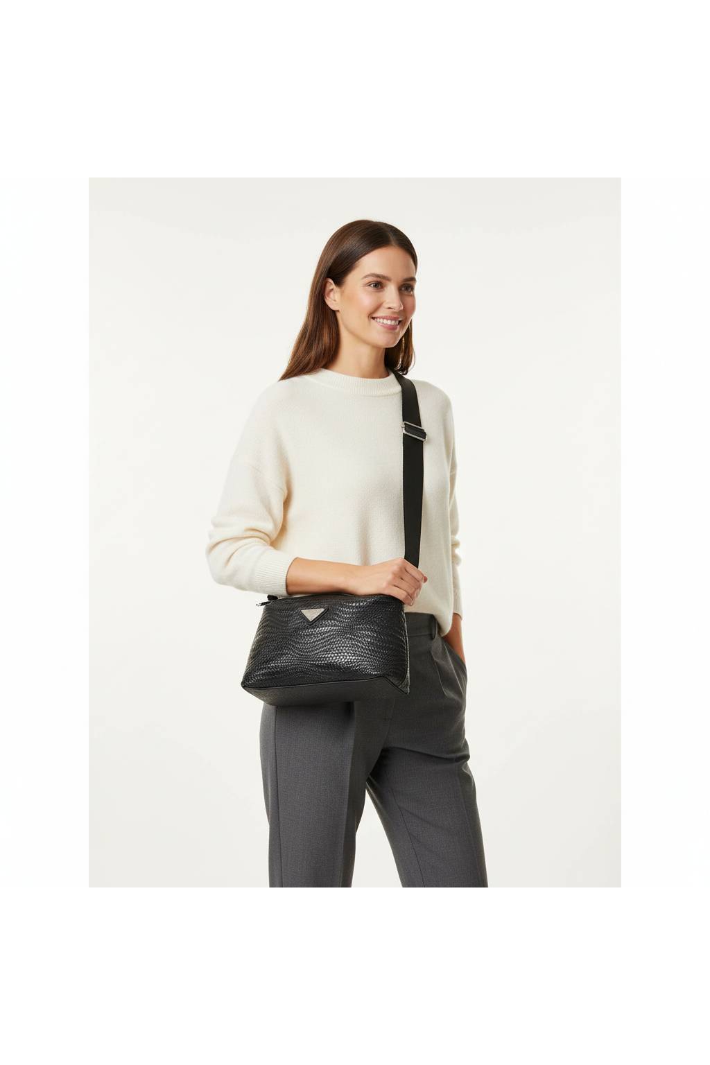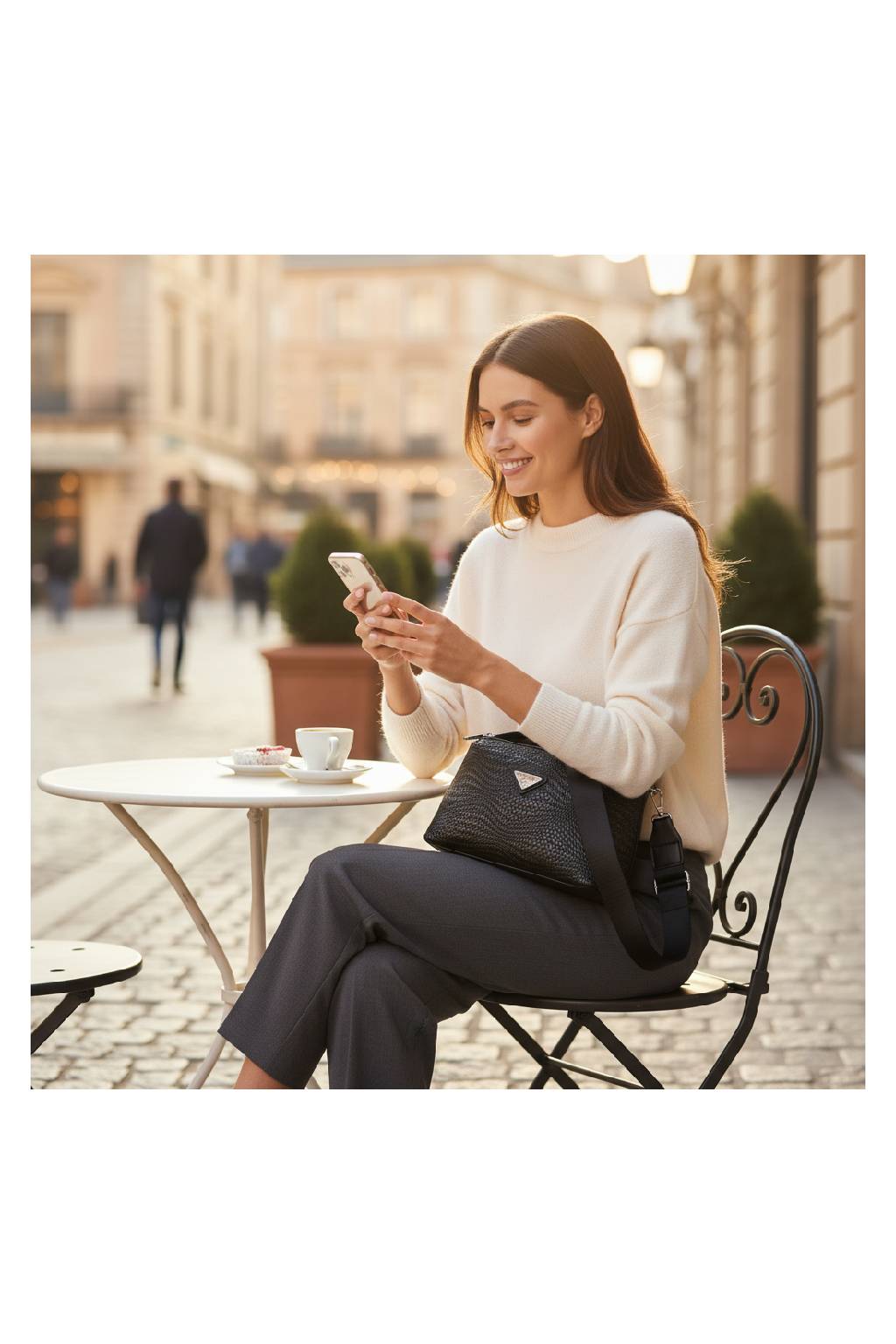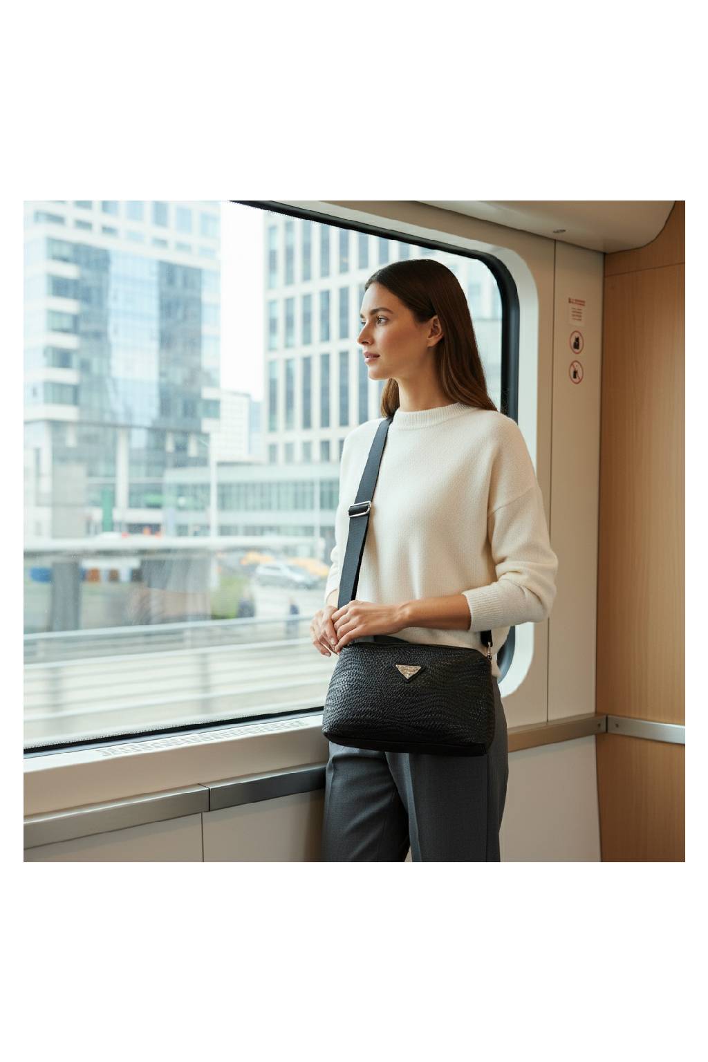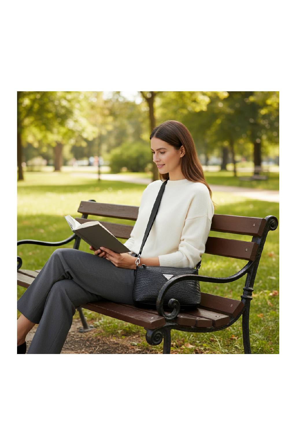 Dámská crossbody kabelka v elegantním designu s propracovaným pleteným vzorem na přední straně. Uzavírání na zip poskytuje bezpečnost, uvnitř jsou praktické přihrádky pro uspořádání věcí. Kabelka má nastavitelný popruh pro pohodlné nošení a ozdobnou třásňovou přívěsku, která jí dodává stylový vzhled. Ideální pro každodenní nošení i speciální příležitosti.