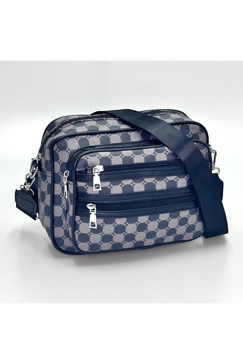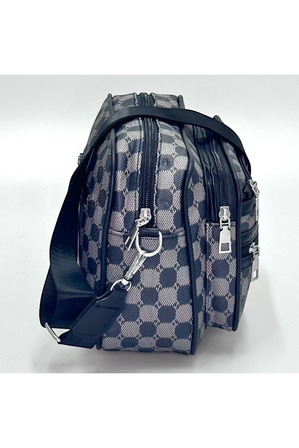Trendy městská crossbody kabelka s nadčasovým kostkovaným vzorem a praktickými kapsami na zip. Lehká, odolná a ideální na každý den – do práce, do města i na cesty.