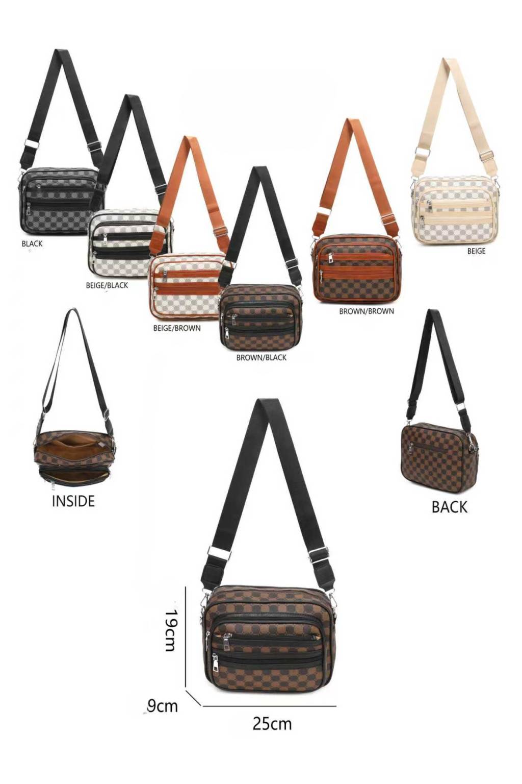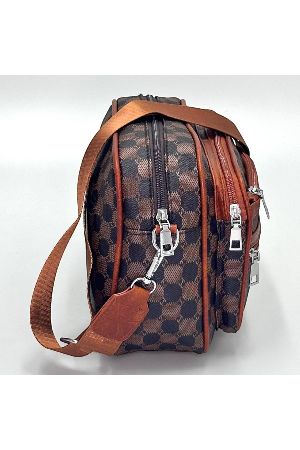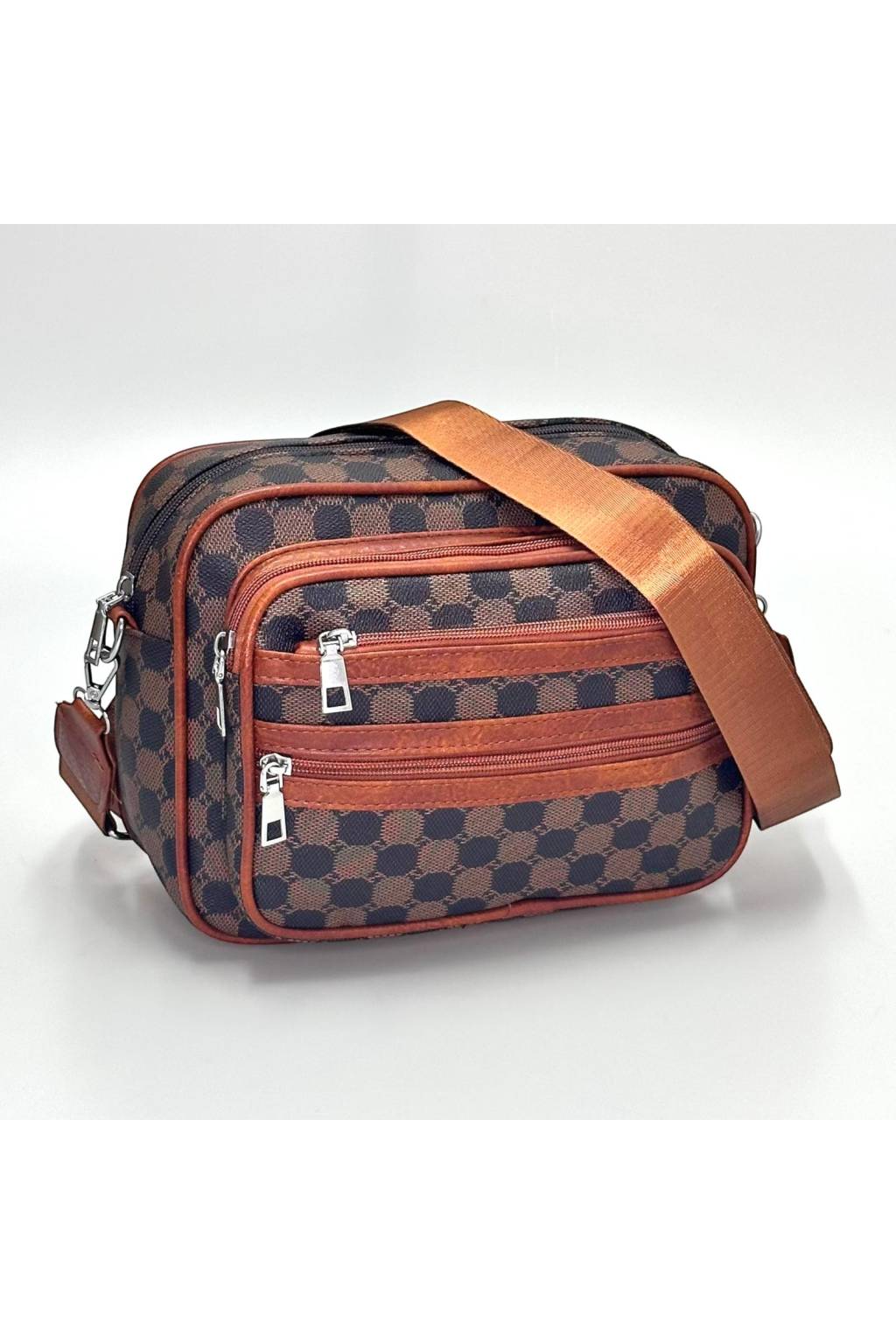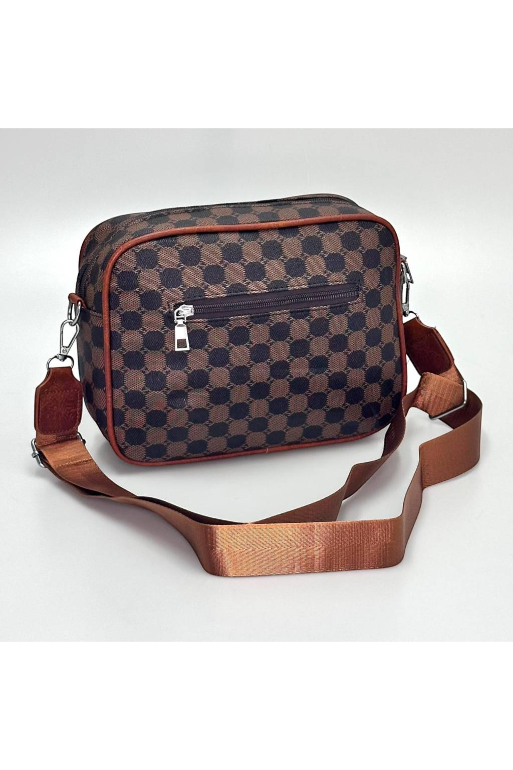 Trendy městská crossbody kabelka s nadčasovým kostkovaným vzorem a praktickými kapsami na zip. Lehká, odolná a ideální na každý den – do práce, do města i na cesty.