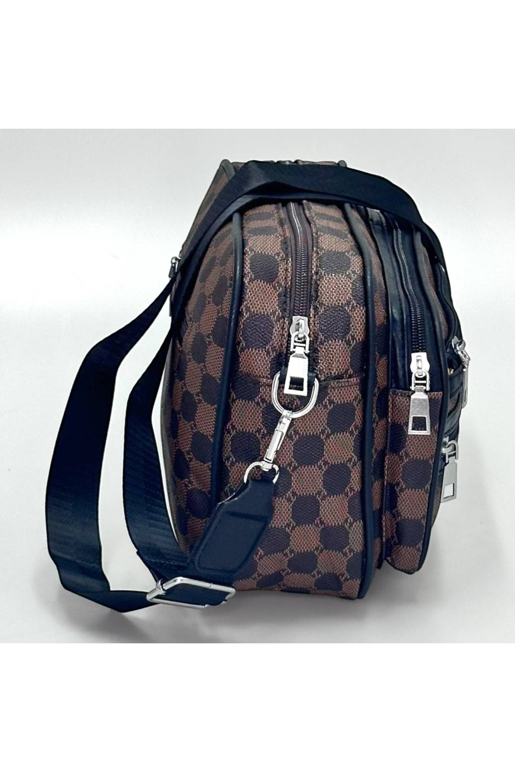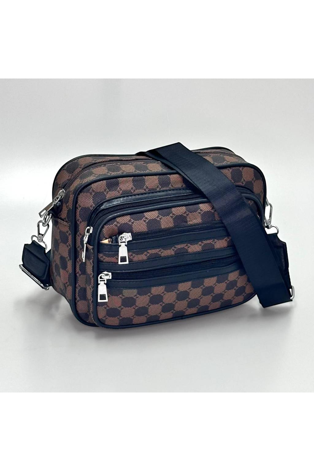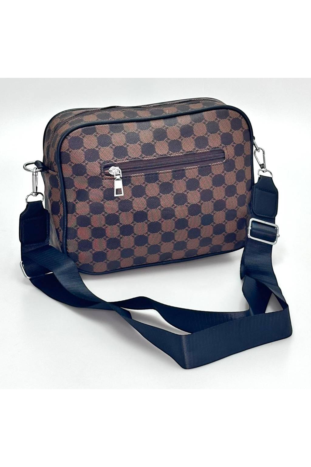 Trendy městská crossbody kabelka s nadčasovým kostkovaným vzorem a praktickými kapsami na zip. Lehká, odolná a ideální na každý den – do práce, do města i na cesty.