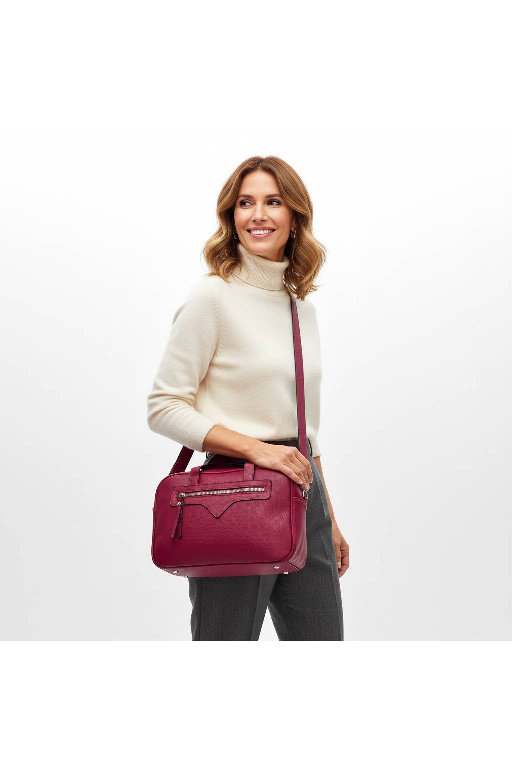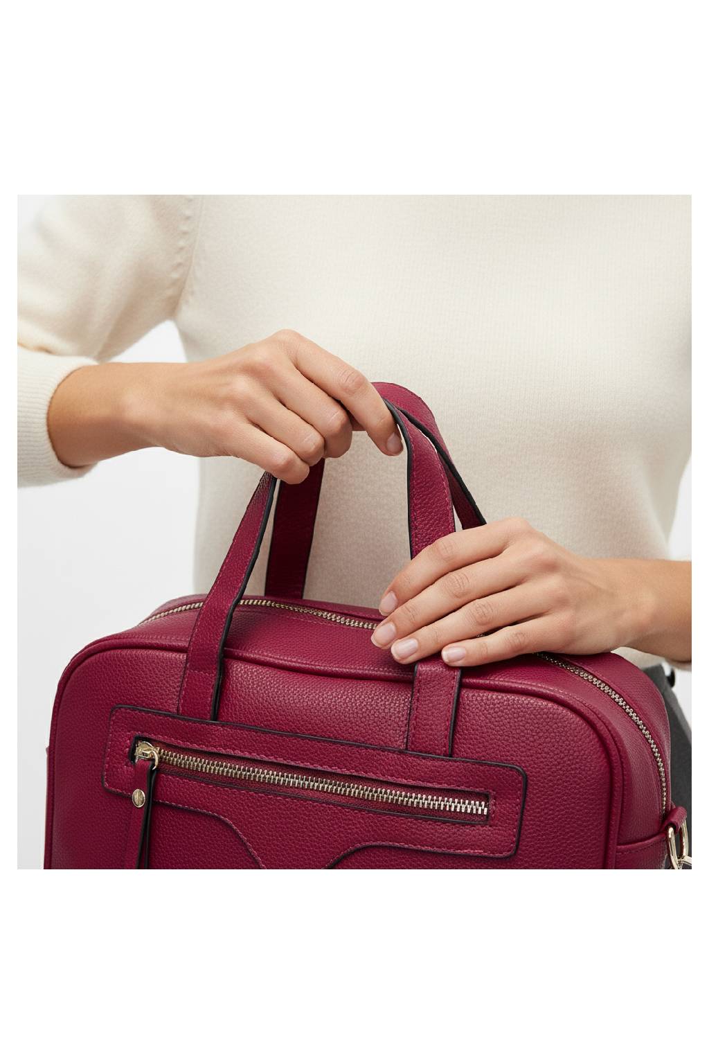 Elegantní městská kabelka se strukturovaným povrchem, dvěma pevnými uchy a odnímatelným nastavitelným popruhem přes rameno. Díky čisté linii a chytré organizaci je ideální do práce, do města i na volný čas.