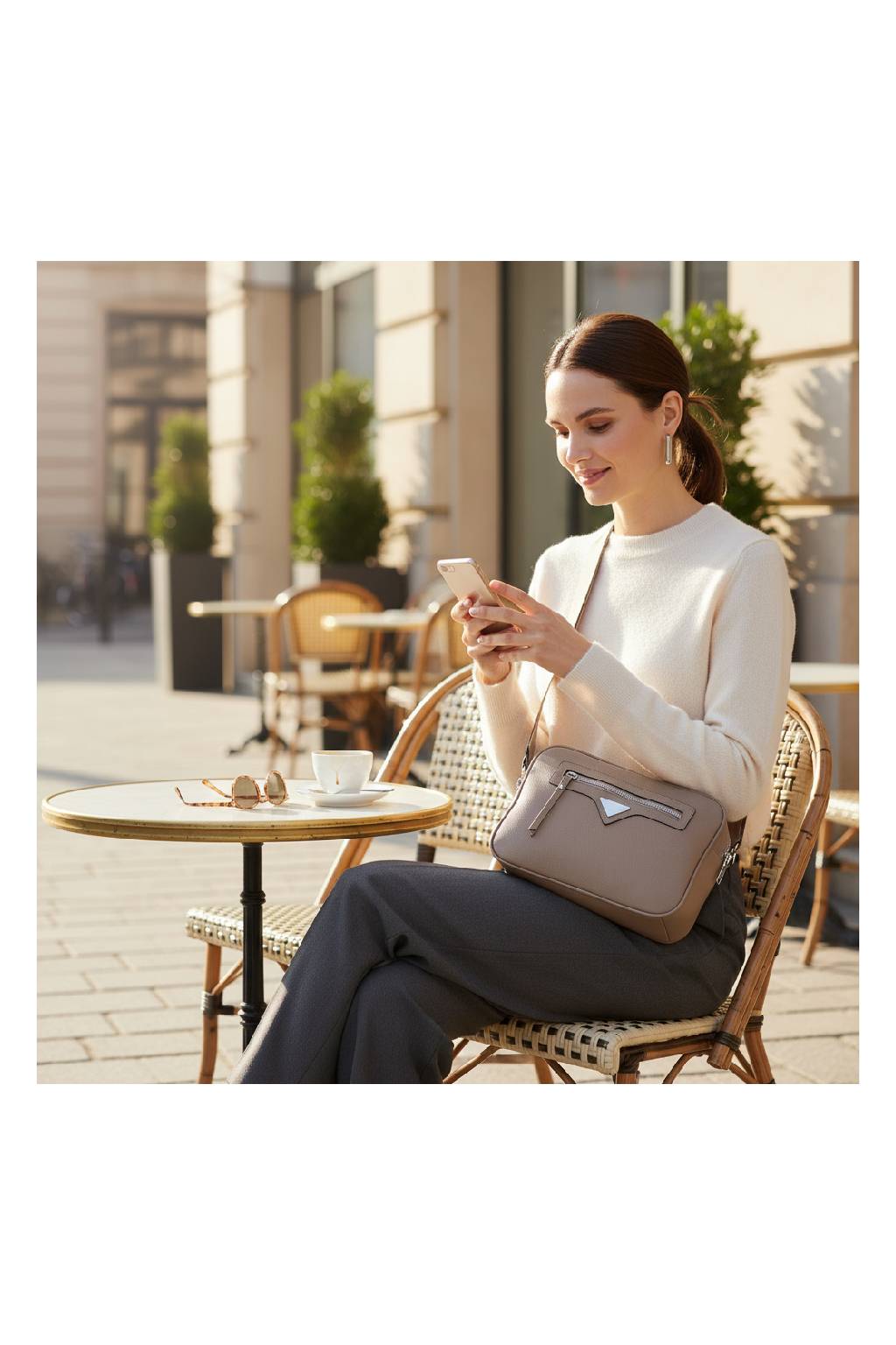 Stylová městská kabelka v trendové barvě se zrnitou texturou a širokým popruhem. Dvě samostatné zipové komory udrží pořádek, přední a zadní kapsa jsou na vše, co chcete mít po ruce. Lehká, měkká, ale dobře drží tvar – ideální do práce, do města i na výlety.
