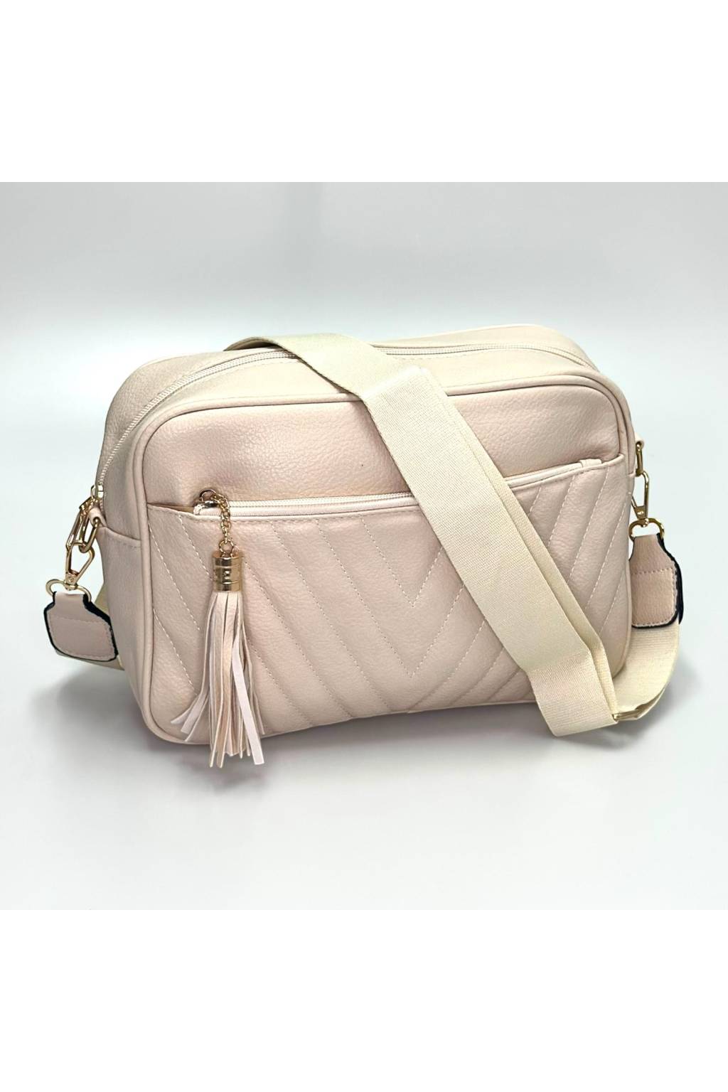 Stylová městská crossbody kabelka s decentním prošíváním a ozdobným střapcem. Ideální na každý den – kompaktní, ale překvapivě prostorná.