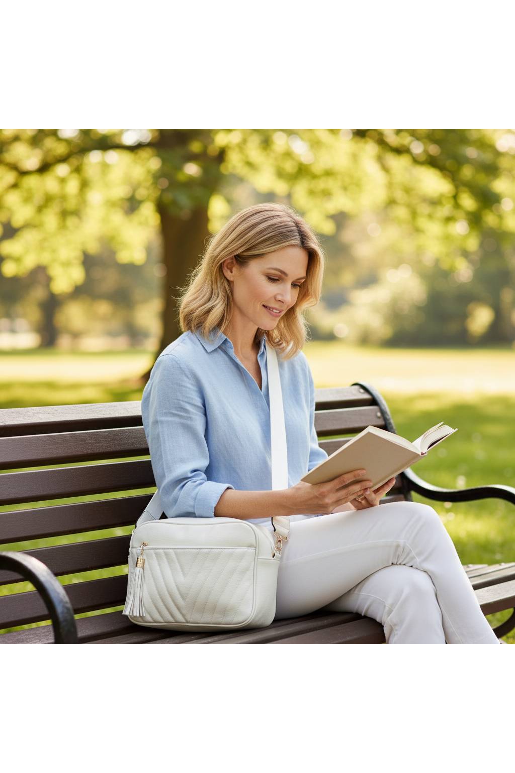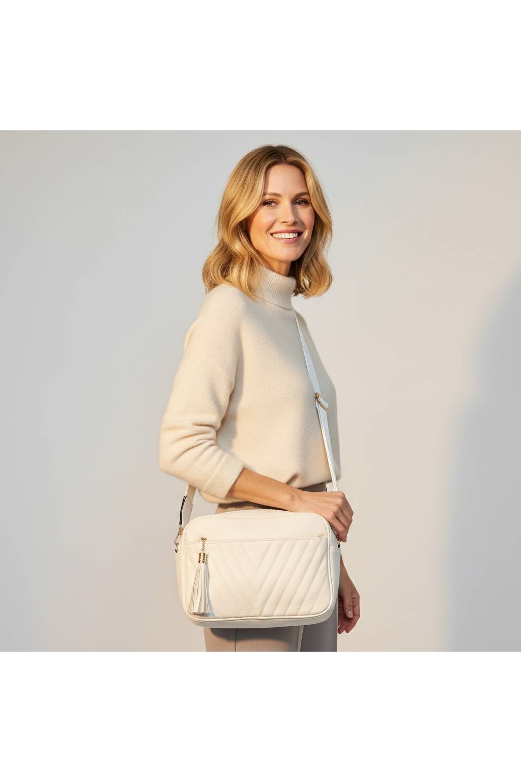 Stylová městská crossbody kabelka s decentním prošíváním a ozdobným střapcem. Ideální na každý den – kompaktní, ale překvapivě prostorná.