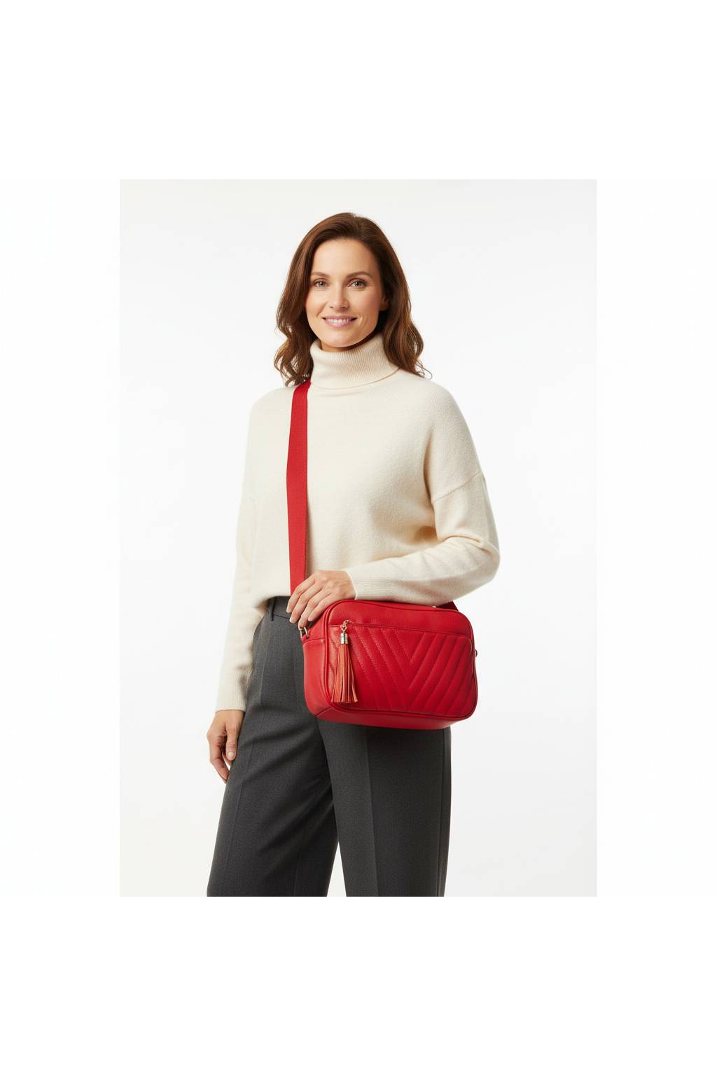 Stylová městská crossbody kabelka s decentním prošíváním a ozdobným střapcem. Ideální na každý den – kompaktní, ale překvapivě prostorná.