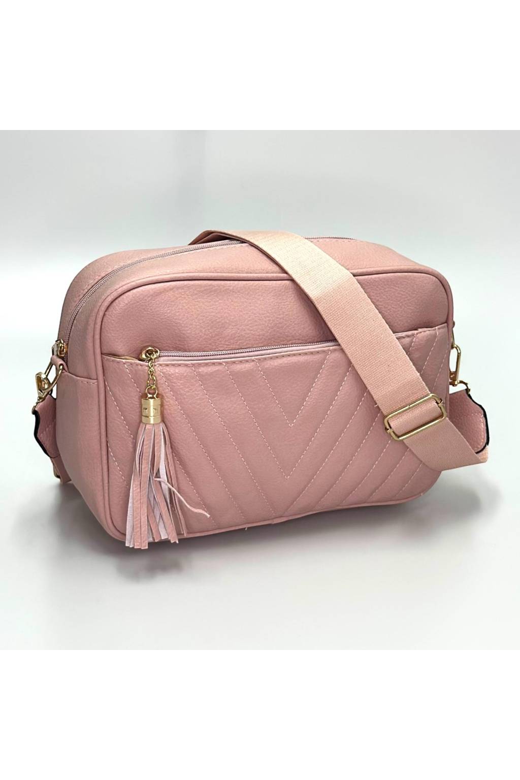 Stylová městská crossbody kabelka s decentním prošíváním a ozdobným střapcem. Ideální na každý den – kompaktní, ale překvapivě prostorná.
