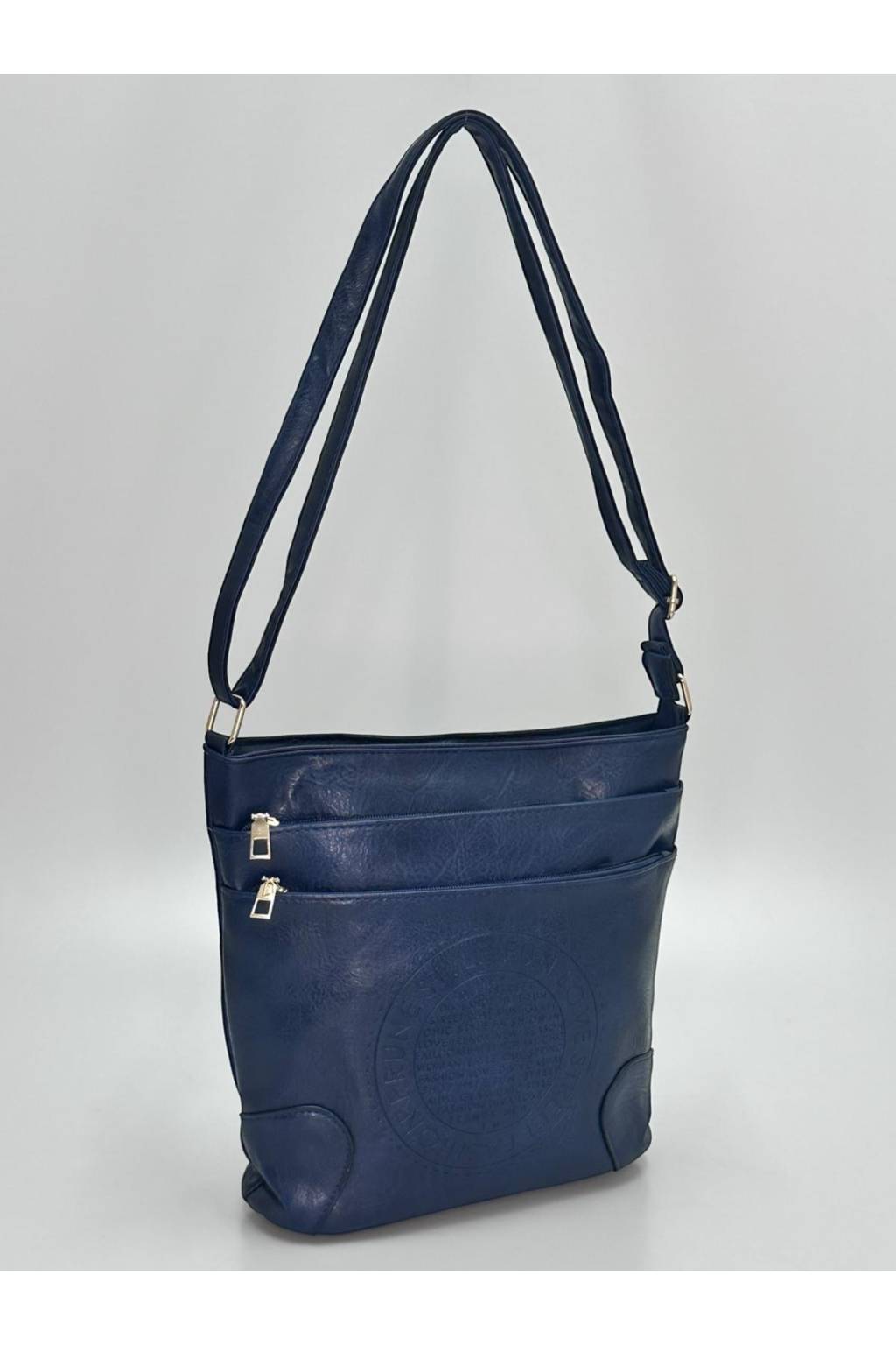 Dámská crossbody kabelka v elegantním provedení. Praktický model se dvěma předními kapsami na zip a reliéfním zdobením na přední straně. Nastavitelný popruh umožňuje pohodlné nošení křížem přes tělo i na rameni. Ideální pro každodenní používání díky svému prostornému a funkčnímu provedení.