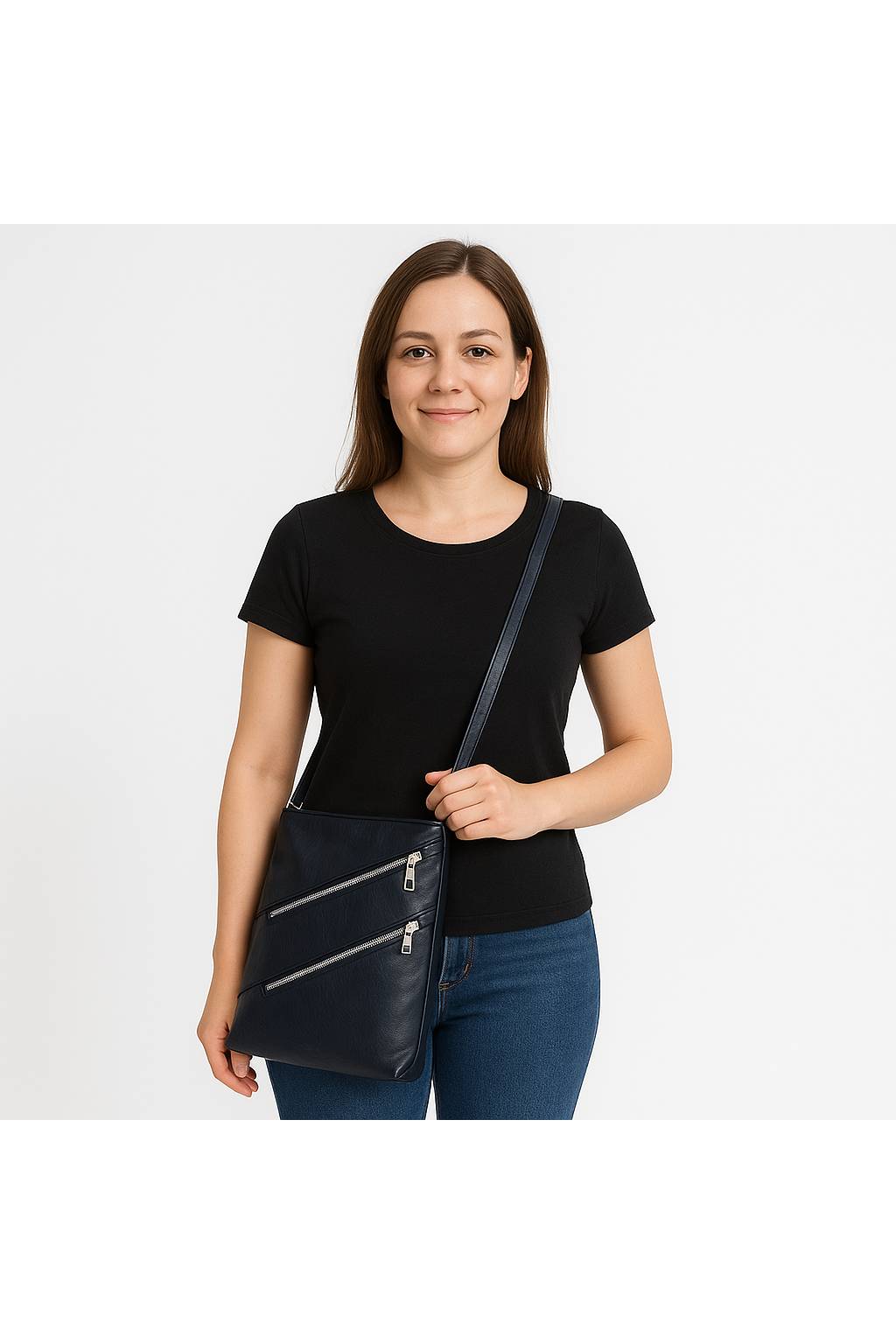 Kabelka nabízí praktické uspořádání kapes – na přední straně se nachází dva šikmé zipy, které jí dodávají moderní vzhled a zároveň poskytují prostor na drobnosti, které chcete mít vždy po ruce. Na zadní straně najdete další kapsu na zip, ideální na mobilní telefon nebo klíče. Hlavní prostor kabelky je dostatečně prostorný pro každodenní nezbytnosti a bezpečně se uzavírá zipem.