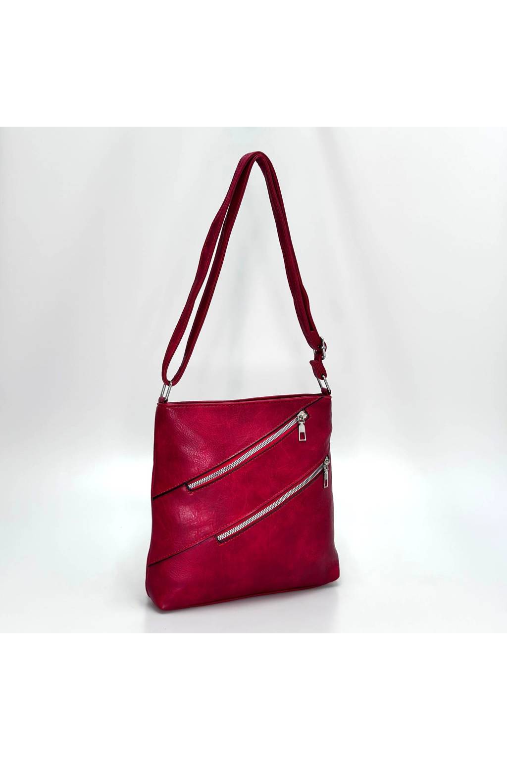 Kabelka nabízí praktické uspořádání kapes – na přední straně se nachází dva šikmé zipy, které jí dodávají moderní vzhled a zároveň poskytují prostor na drobnosti, které chcete mít vždy po ruce. Na zadní straně najdete další kapsu na zip, ideální na mobilní telefon nebo klíče. Hlavní prostor kabelky je dostatečně prostorný pro každodenní nezbytnosti a bezpečně se uzavírá zipem.
