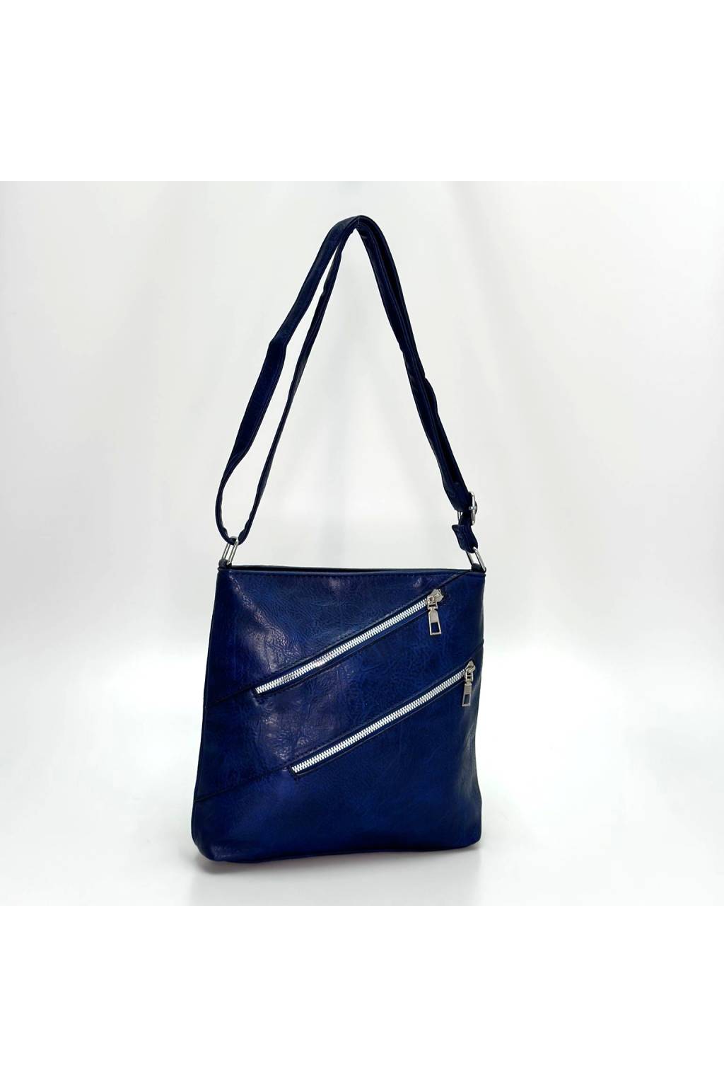 Kabelka nabízí praktické uspořádání kapes – na přední straně se nachází dva šikmé zipy, které jí dodávají moderní vzhled a zároveň poskytují prostor na drobnosti, které chcete mít vždy po ruce. Na zadní straně najdete další kapsu na zip, ideální na mobilní telefon nebo klíče. Hlavní prostor kabelky je dostatečně prostorný pro každodenní nezbytnosti a bezpečně se uzavírá zipem.