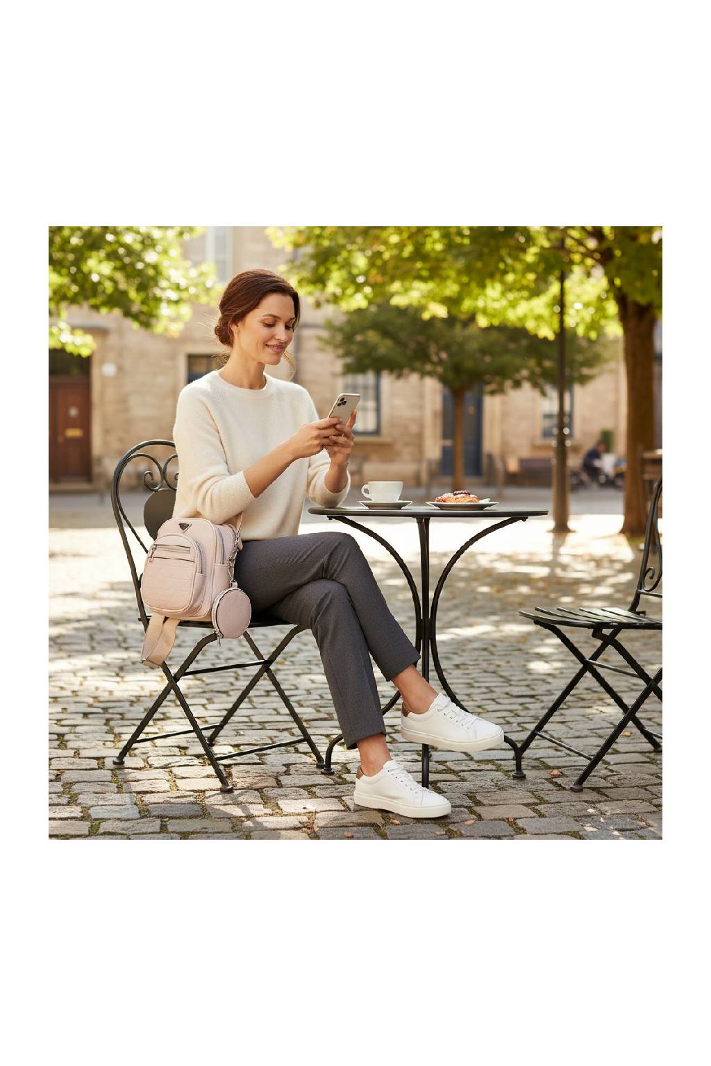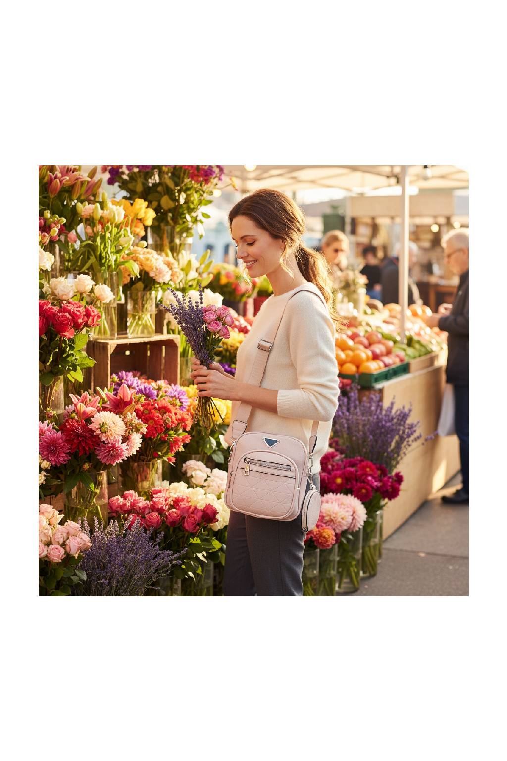 Uvnitř i na zadní straně kabelky se nachází zipová kapsa.