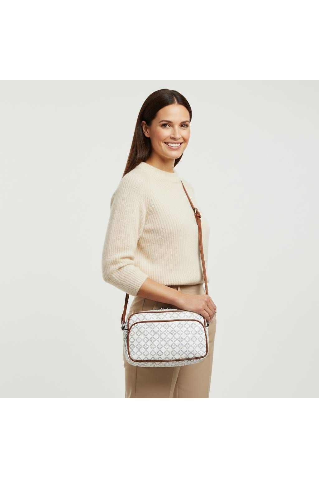 Dámská elegantní crossbody kabelka 1754-Z8-13570 bílá-hnědá