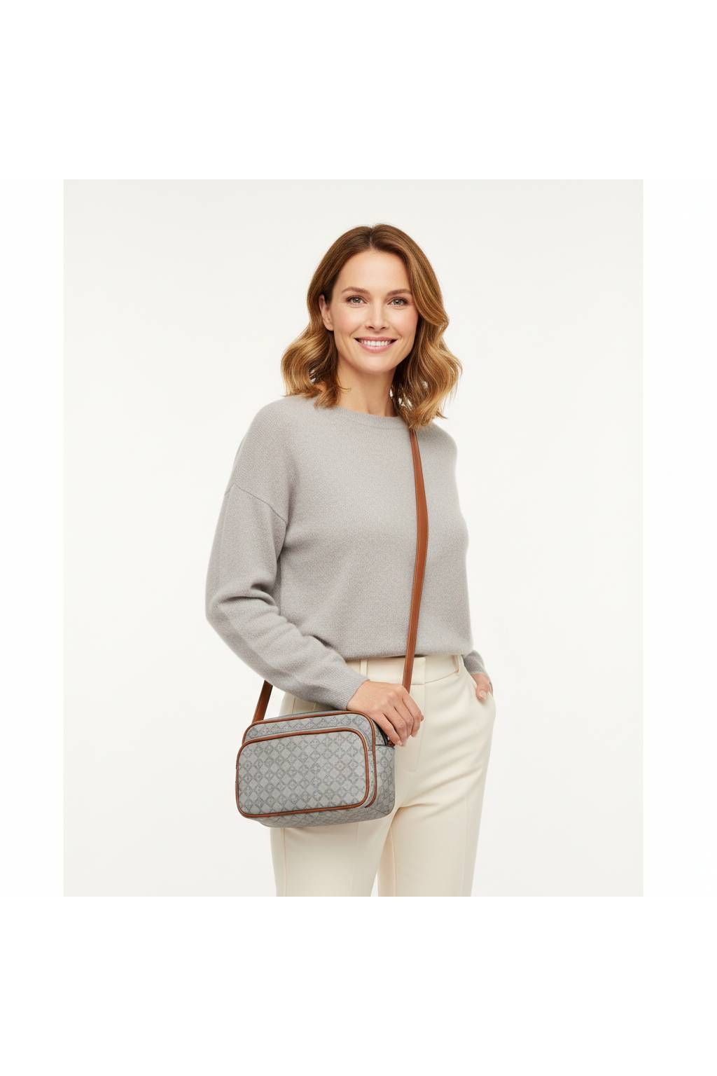 Dámská elegantní crossbody kabelka 1754-Z8-13570 šedá-hnědá