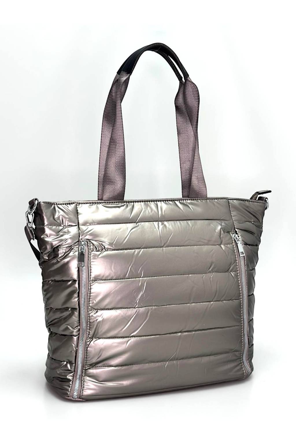 Trendy dámská shopper kabelka z lehkého, mírně lesklého a vodoodpudivého prošívaného materiálu. Praktické zapínání na zip, dlouhá ucha na rameno a odnímatelný nastavitelný crossbody popruh z ní dělají ideální tašku do města, do práce i na víkend. Interiér je chytře členěný, takže mobil, klíče i peněženku máte vždy po ruce.