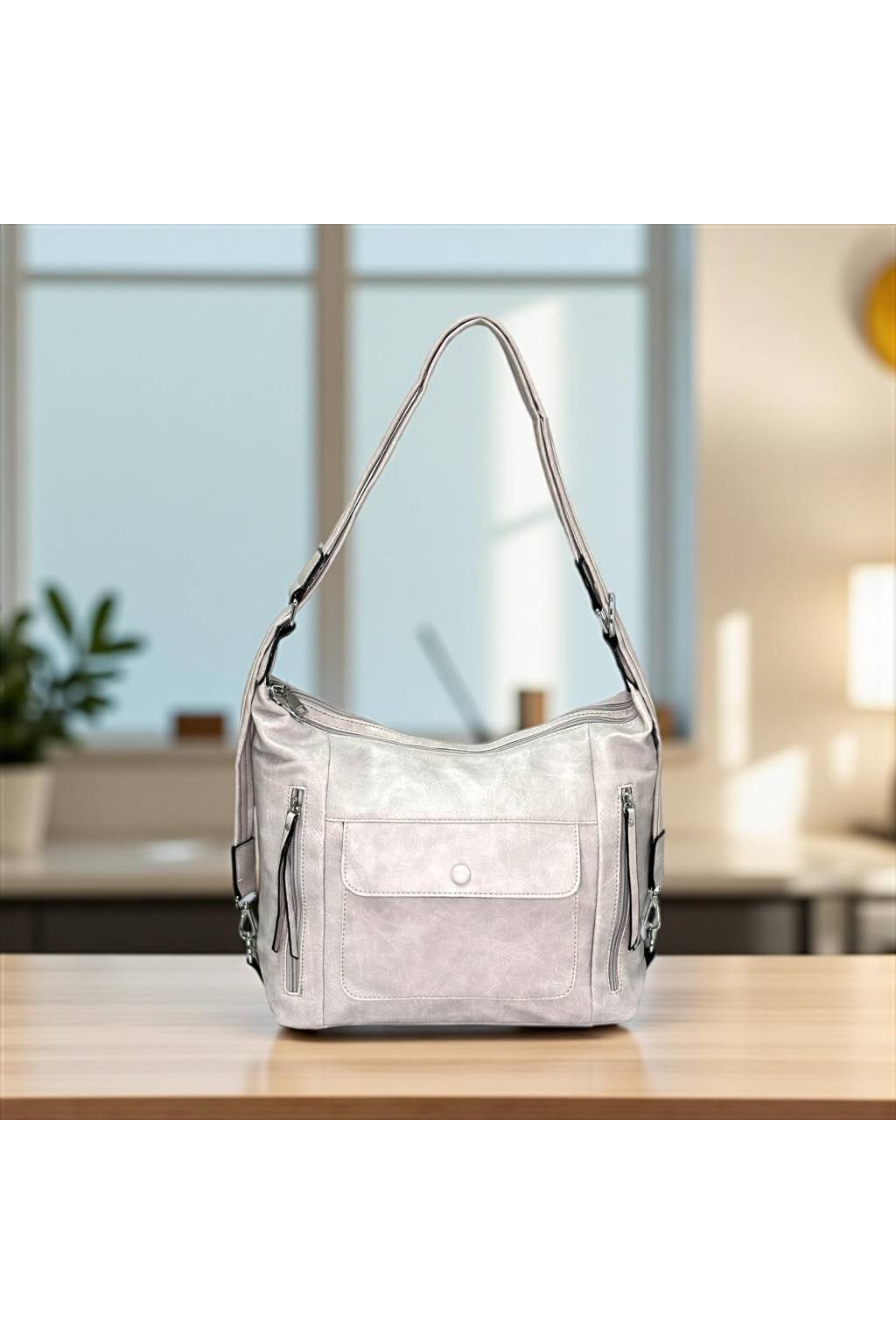 Stylová a prostorná dámská kabelka, kterou lze nosit na 2 způsoby - jako kabelku na rameno nebo jako batoh.