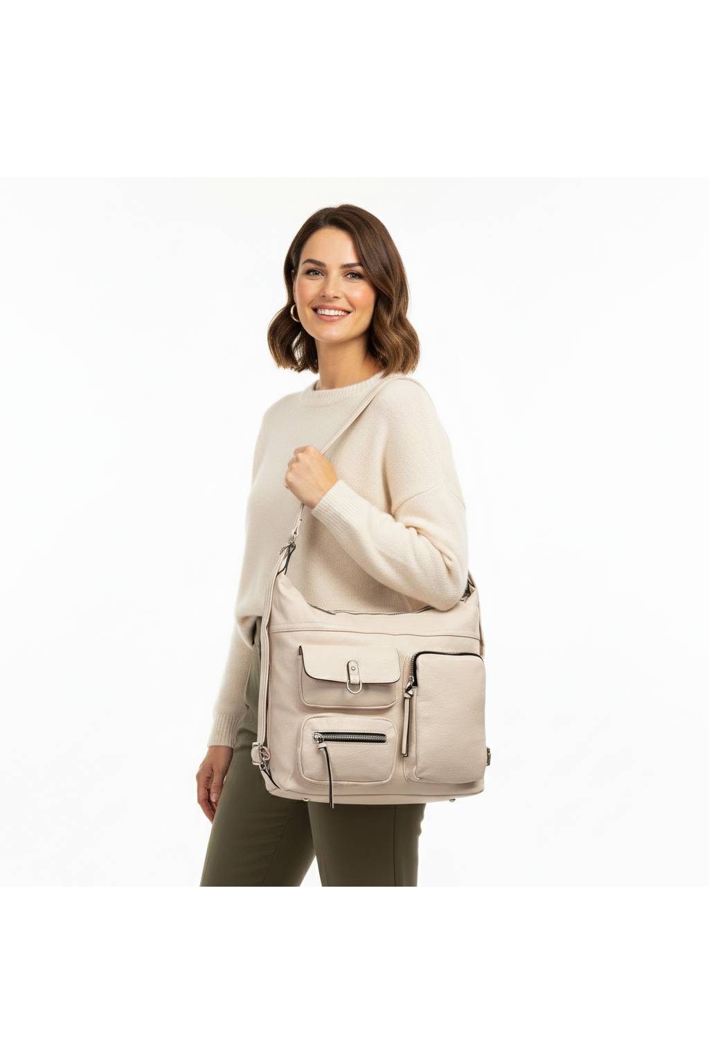 Hledáte kabelku, která vypadá stylově a zároveň je maximálně praktická? Tento model je skvělý na každý den. Díky chytrému řešení 2v1 ji můžete nosit jako klasickou kabelku přes rameno nebo jako batoh – ideální do města, do práce, na cestování i na nákupy. Přední část doplňují více zipové kapsy, takže všechny důležité věci máte vždy po ruce.