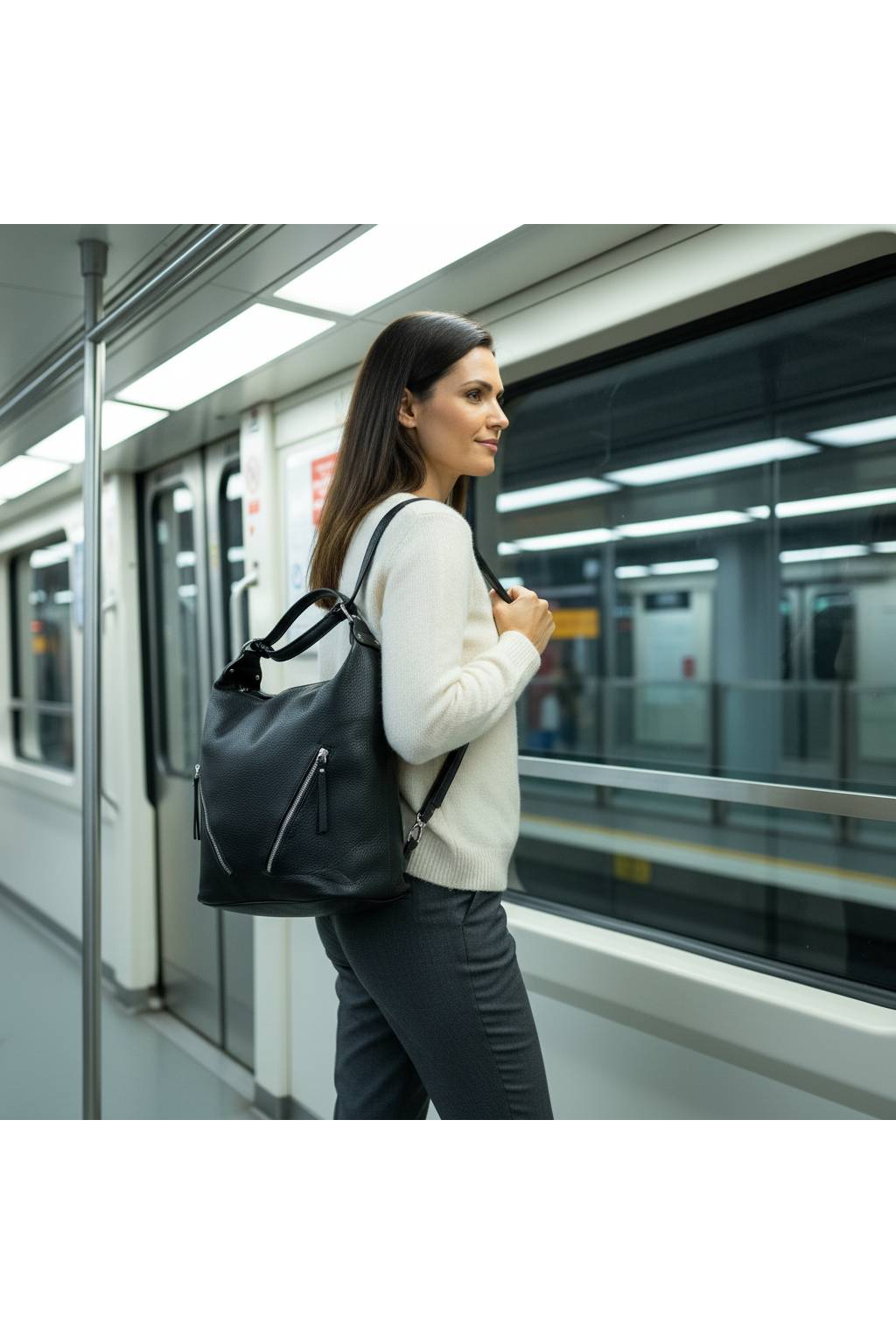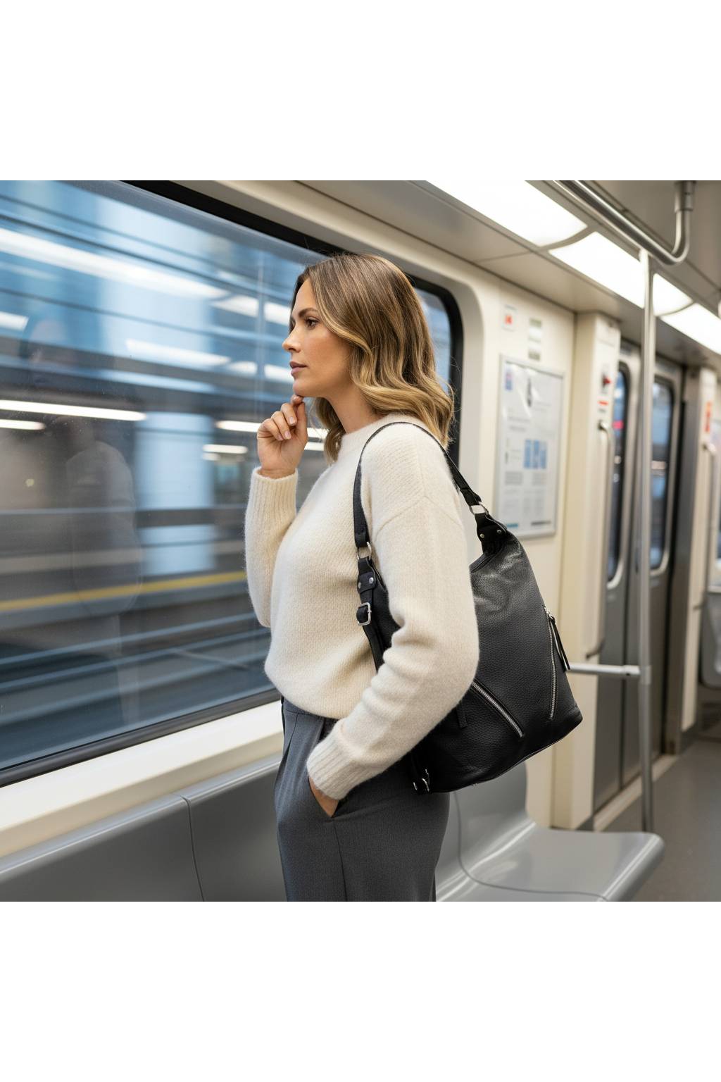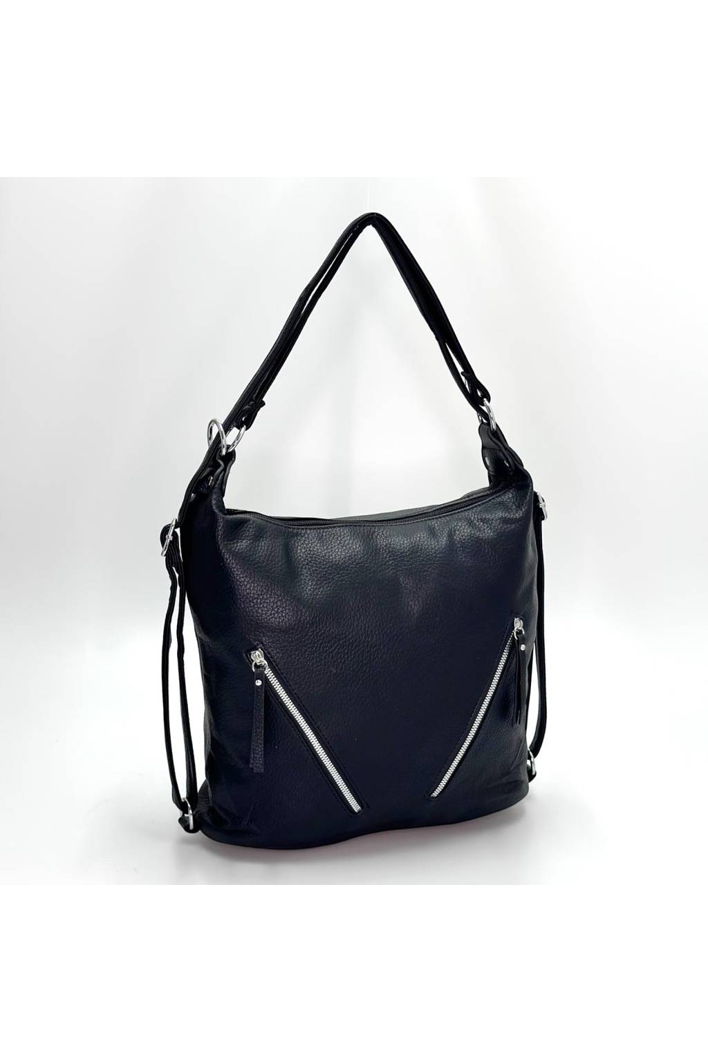 Prostorná hobo kabelka s měkkým tělem, pohodlným ramenním uchem a praktickými zip kapsami. Skvělá do práce, na nákupy i volný čas – vejde se diář, velká peněženka, kosmetika i lahev 0,5 l. Dostupná v několika barevných variantách.