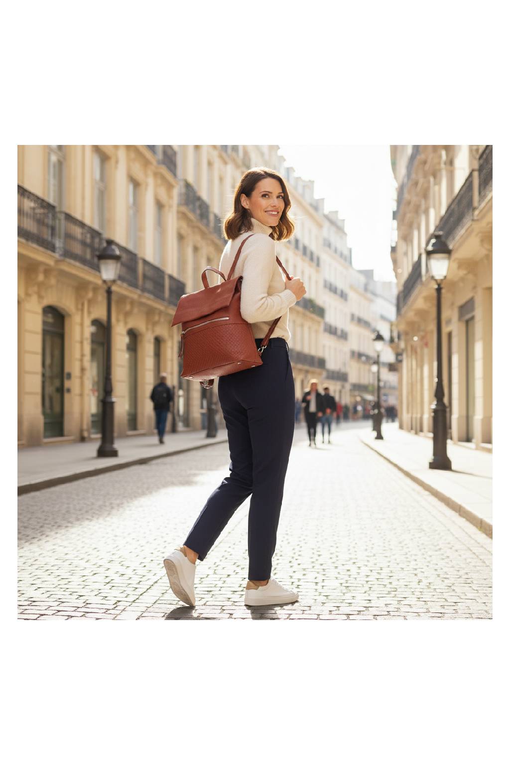 Univerzální dámský batoh 2v1 s horním uchem a překlopnou klopou. Díky nastavitelným popruhům jej pohodlně nosíte na zádech i přes rameno jako kabelku. Měkká, na dotek příjemná eko kůže, podšívka, kvalitní kovové kování. Pojme A4, láhev s vodou, peněženku i denní nezbytnosti. Dostupný ve více barevných variantách.