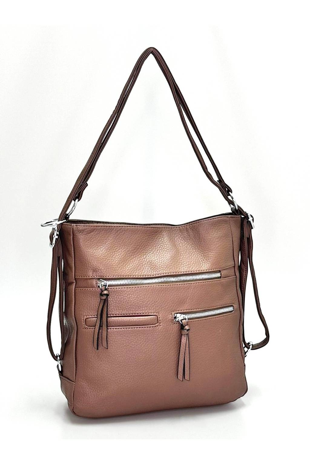 Stylová a prostorná dámská kabelka, kterou lze nosit na 2 způsoby - jako kabelku na rameno nebo jako batoh.