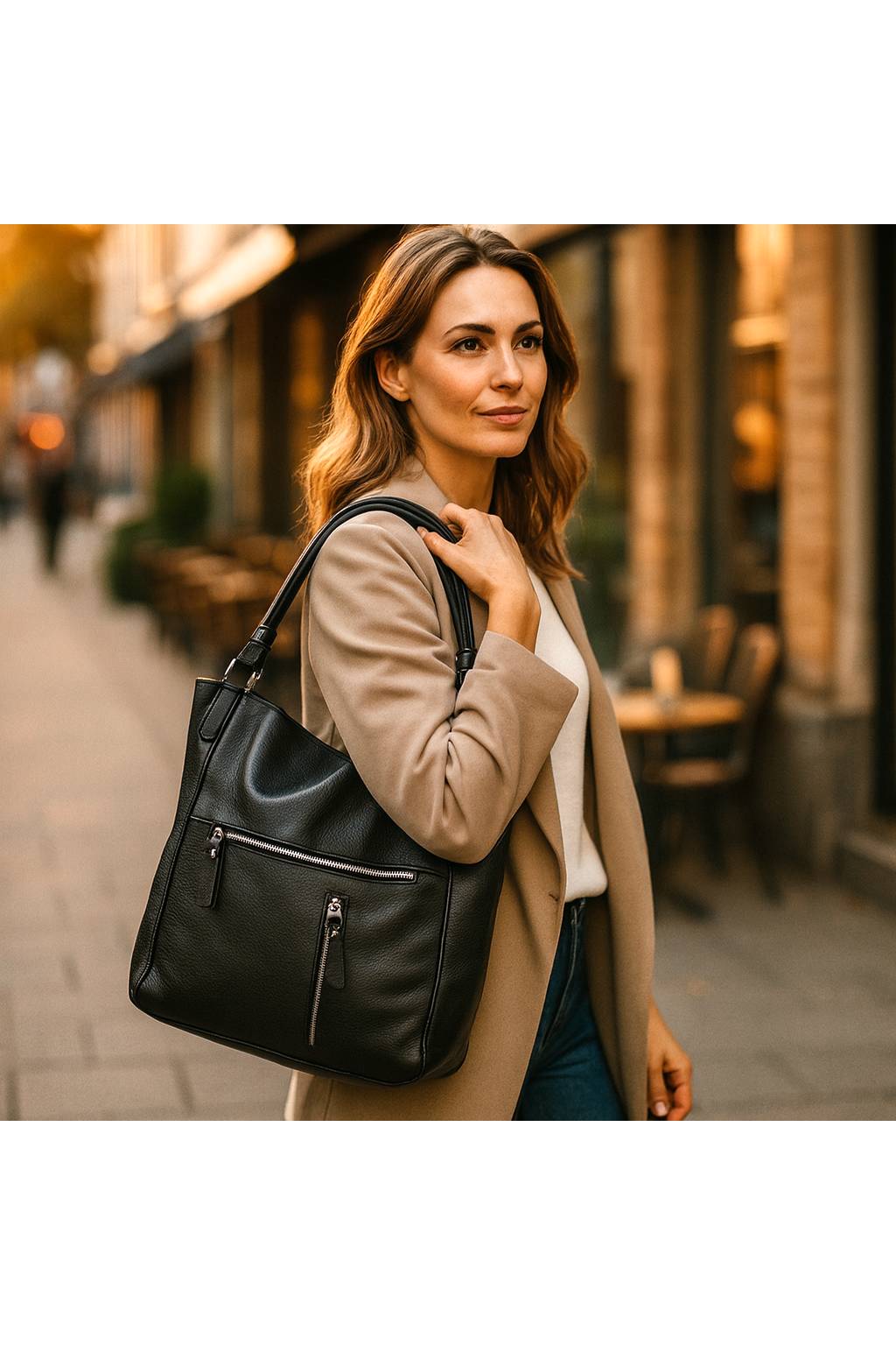 Prostorná a moderní dámská kabelka, která díky svým rozměrům nabízí dostatek úložného prostoru pro všechny potřebné věci.