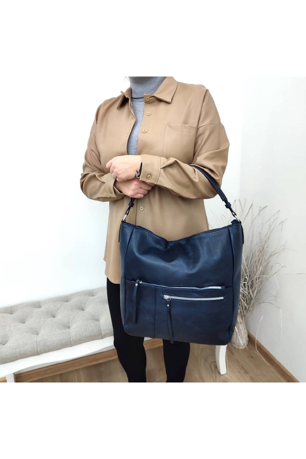 Prostorná a moderní dámská kabelka, která díky svým rozměrům nabízí dostatek úložného prostoru pro všechny potřebné věci.