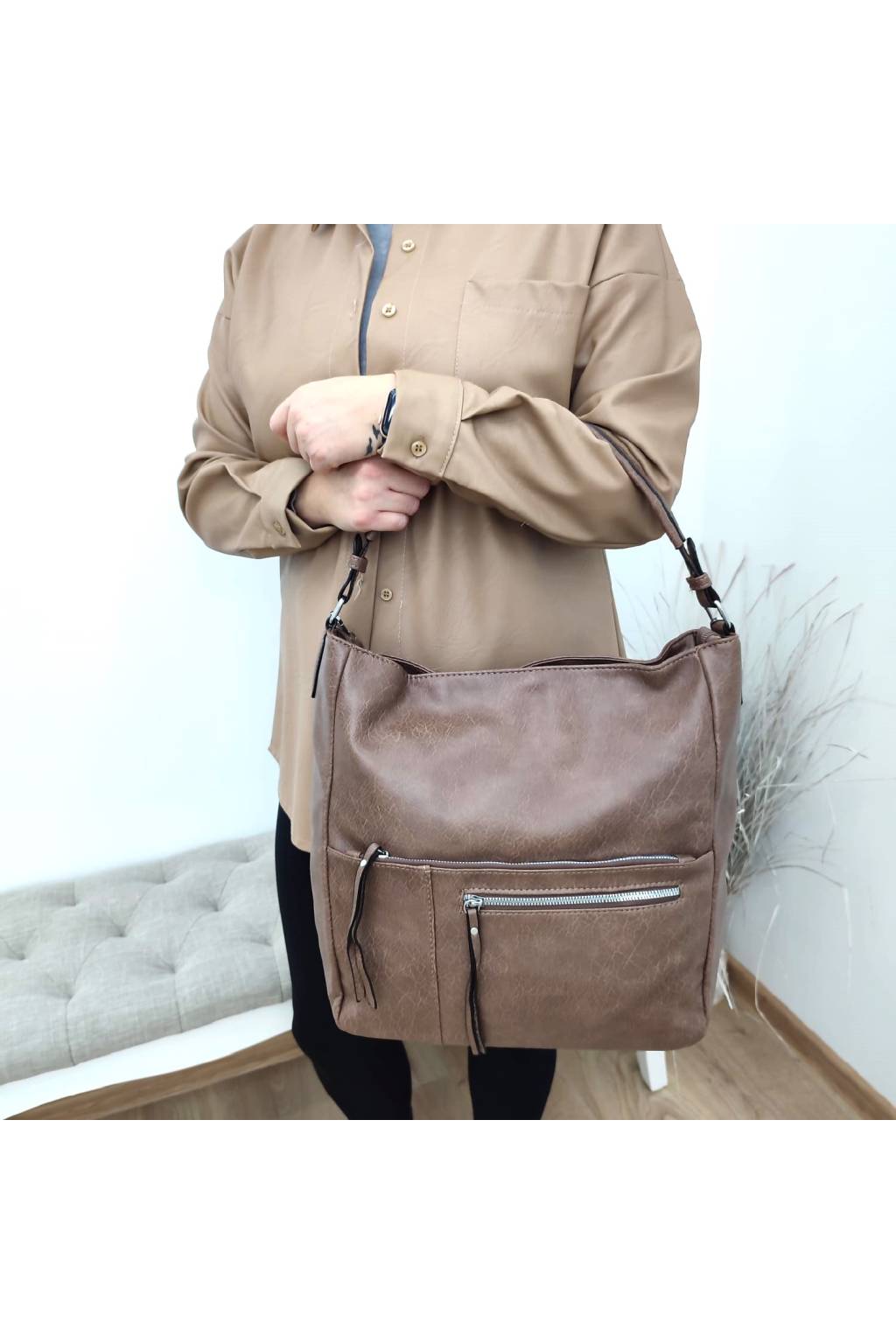 Prostorná a moderní dámská kabelka, která díky svým rozměrům nabízí dostatek úložného prostoru pro všechny potřebné věci.