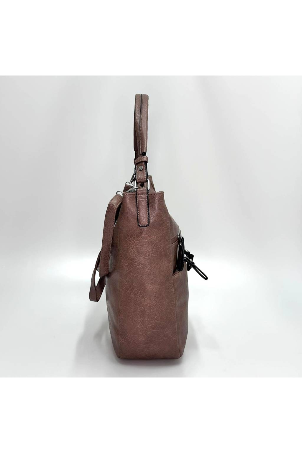 Součástí kabelky jsou dva typy popruhů – kratší pevný pro pohodlné nošení na rameni a delší nastavitelný, díky kterému ji můžete nosit i křížem přes tělo. Kovové doplňky ve stříbrné barvě dodávají kabelce elegantní vzhled a zvyšují její odolnost.
