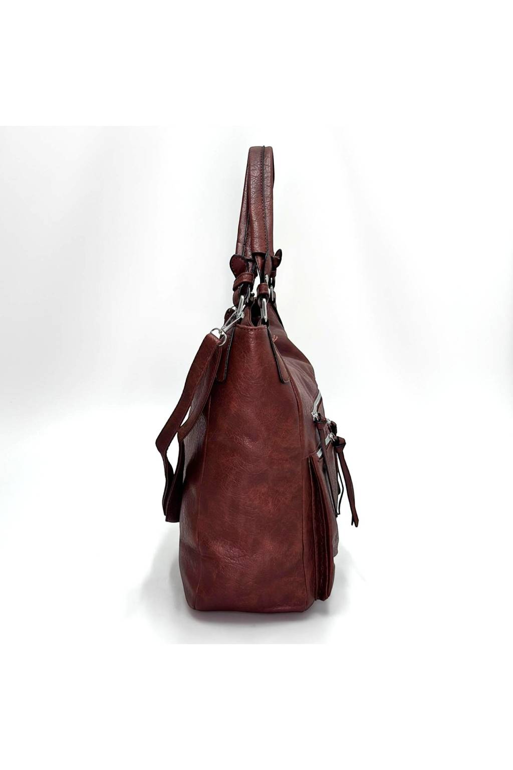 Součástí kabelky jsou dva typy popruhů – kratší pevný pro pohodlné nošení na rameni a delší nastavitelný, díky kterému ji můžete nosit i křížem přes tělo. Kovové doplňky ve stříbrné barvě dodávají kabelce elegantní vzhled a zvyšují její odolnost.