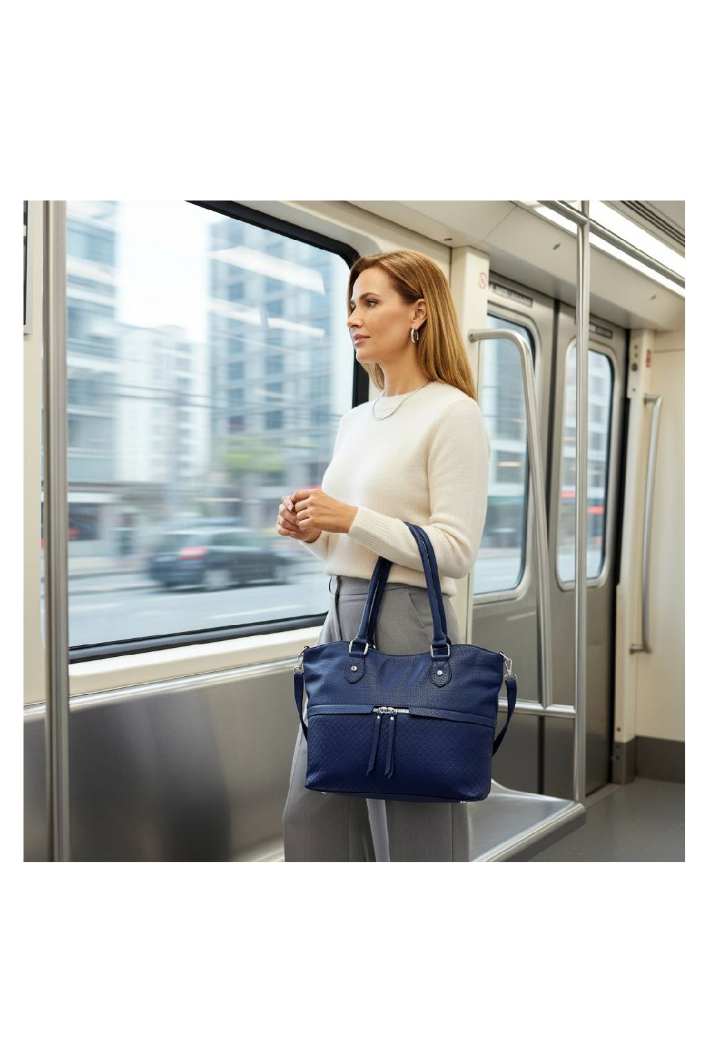 Stylová a praktická kabelka pro každý den. Tento dámský shopper v univerzální barvě spojuje elegantní vzhled, dostatek místa a pohodlné nošení na rameni i křížem díky odepínacímu nastavitelnému popruhu. Spodní část s jemným „pleteným“ vzorem a dekorativní třásně u zipu dodávají kabelce moderní šmrnc.
