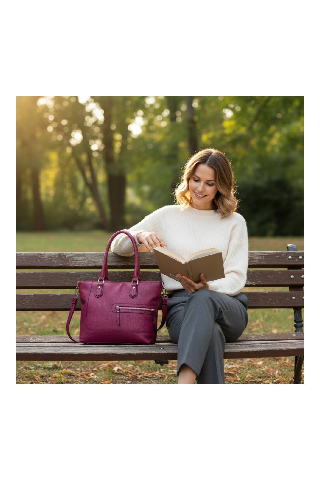 Elegantní městská kabelka z kvalitní eko kůže na každý den. Nadčasový tvar, praktické členění do dvou samostatných komor a pohodlné dlouhé uši z ní dělají ideální volbu do práce, na nákupy i volný čas.