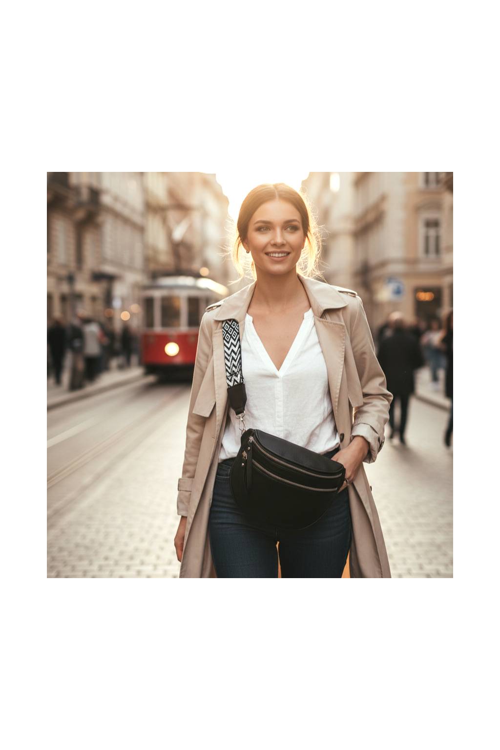 Moderní a prostorná dámská ledvinka z eko kůže. Ideální pro výlety či procházky městem.