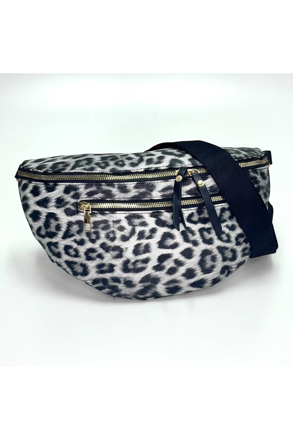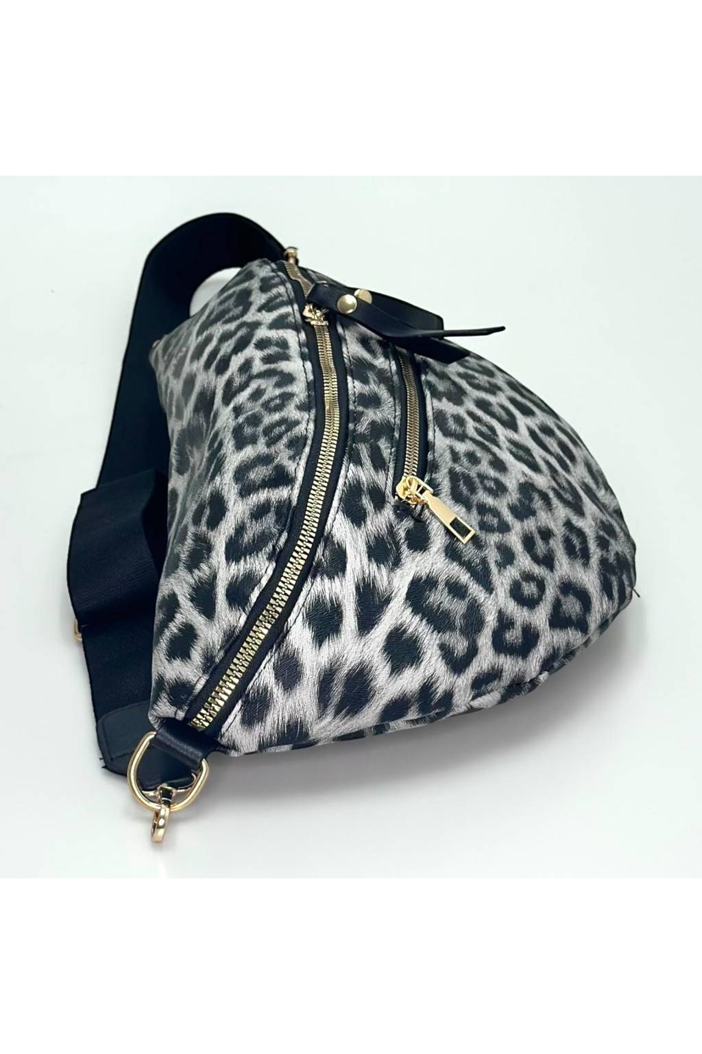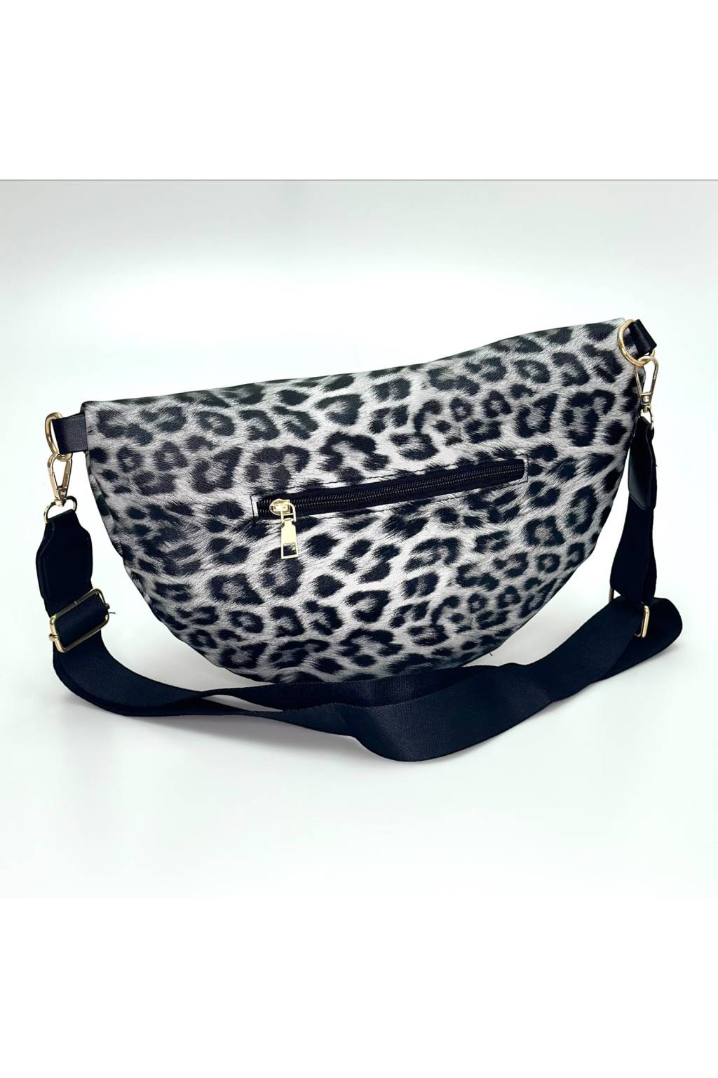 Elegantní polokruhová crossbody kabelka s výrazným leopardím potiskem a širokým pohodlným popruhem. Lehká, praktická a nepřehlédnutelná – ideální do města, na víkend i na cestování.