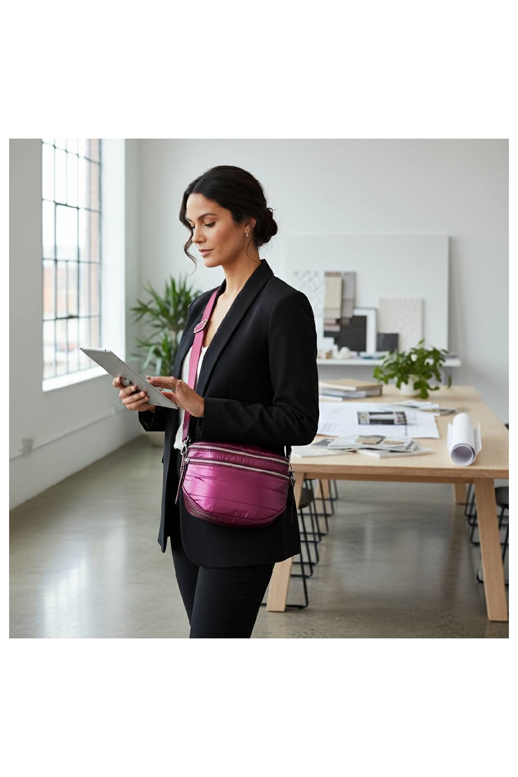 Trendy „puffer“ kabelka, kterou unosíte přes rameno i křížem přes tělo. Lesk, prošívaný design, praktické zipové kapsy a lehká konstrukce – ideální do města, do práce i na víkend.