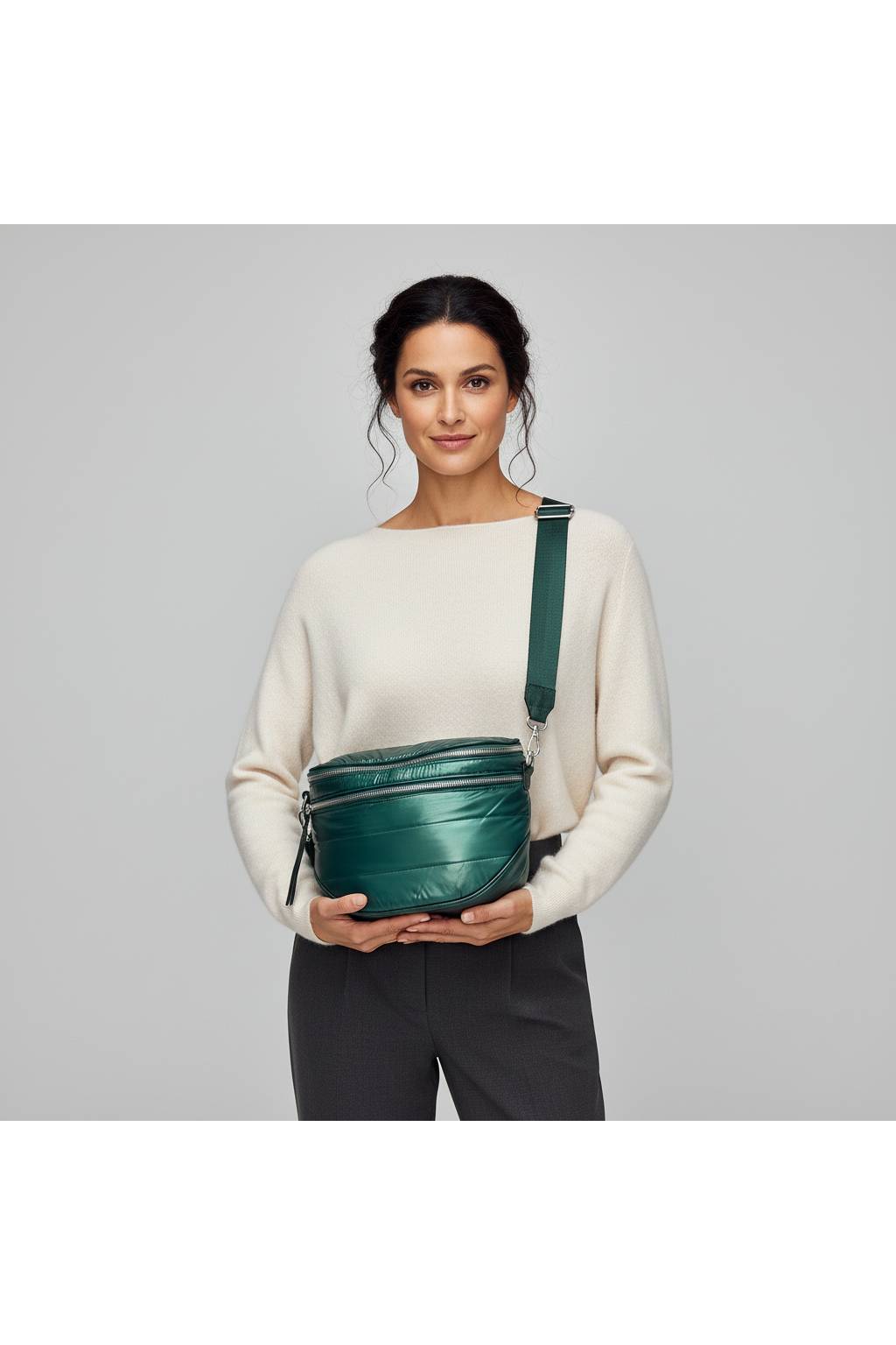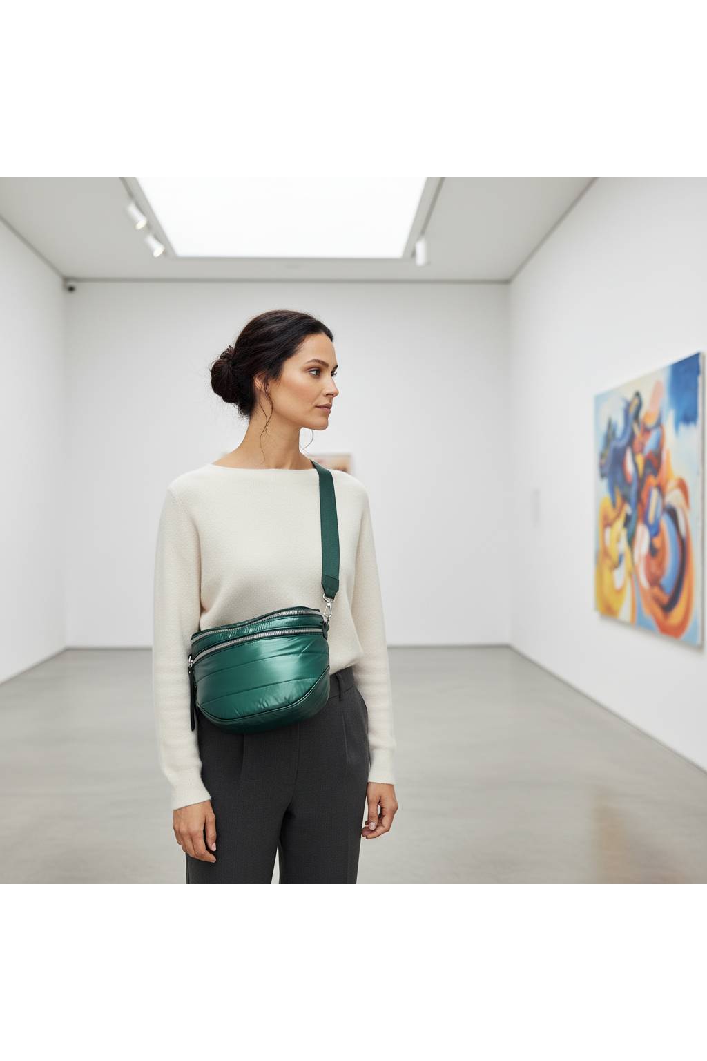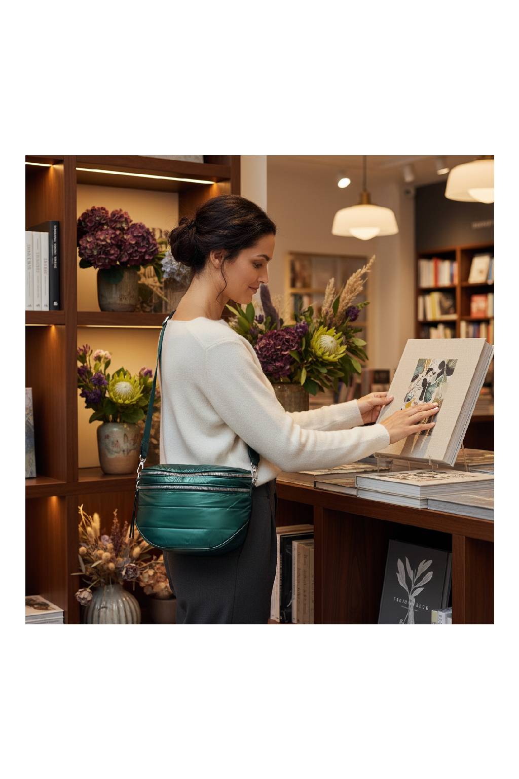 Trendy „puffer“ kabelka, kterou unosíte přes rameno i křížem přes tělo. Lesk, prošívaný design, praktické zipové kapsy a lehká konstrukce – ideální do města, do práce i na víkend.