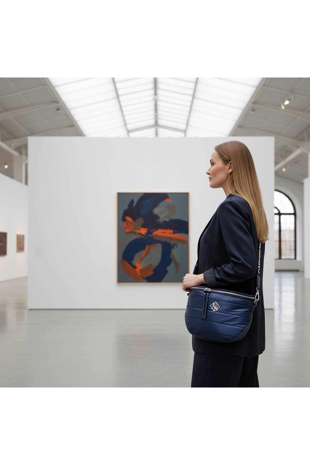 Trendy „puffy“ kabelka přes rameno v leskle barvě dodá outfitu šmrnc a udrží pořádek ve vašich věcech. Prošívaný povrch, široký nastavitelný popruh s nápisem FASHION STYLE a bezpečné celoplošné zipové zapínání – ideální do města, do práce i na volný čas.