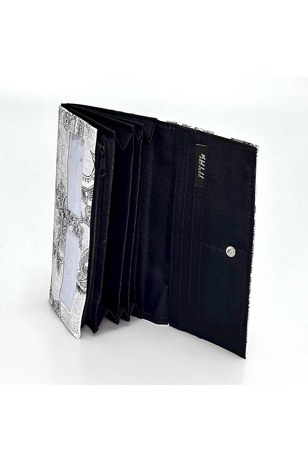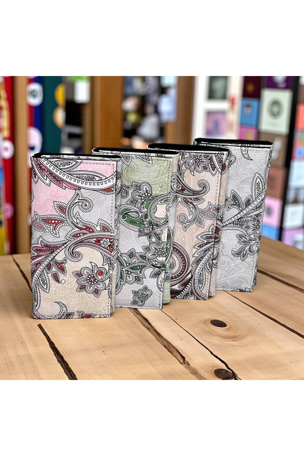 Elegantní dámská peněženka ve stylovém orientálním vzoru, dostupná v několika barevných variantách (růžová, zelená, béžová, černo-bílá). Moderní design s praktickým vnitřním členěním z ní dělá ideální doplněk pro každodenní použití.