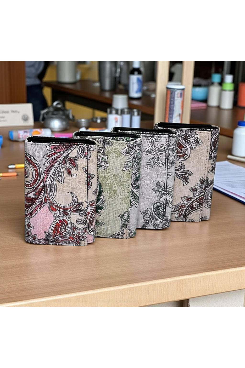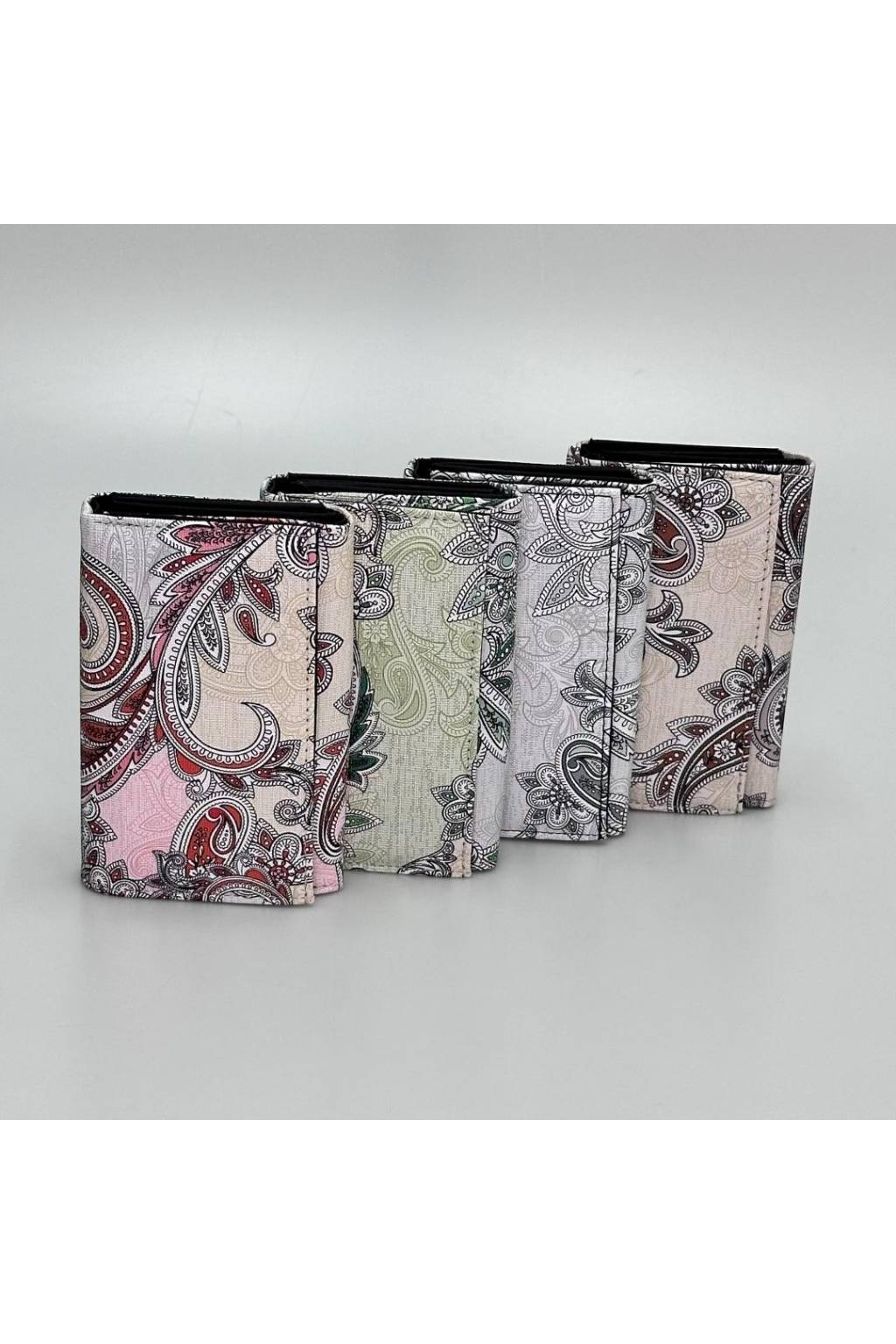 Elegantní dámská peněženka ve stylovém orientálním vzoru, dostupná v několika barevných variantách (růžová, zelená, béžová, černo-bílá). Moderní design s praktickým vnitřním členěním z ní dělá ideální doplněk pro každodenní použití.