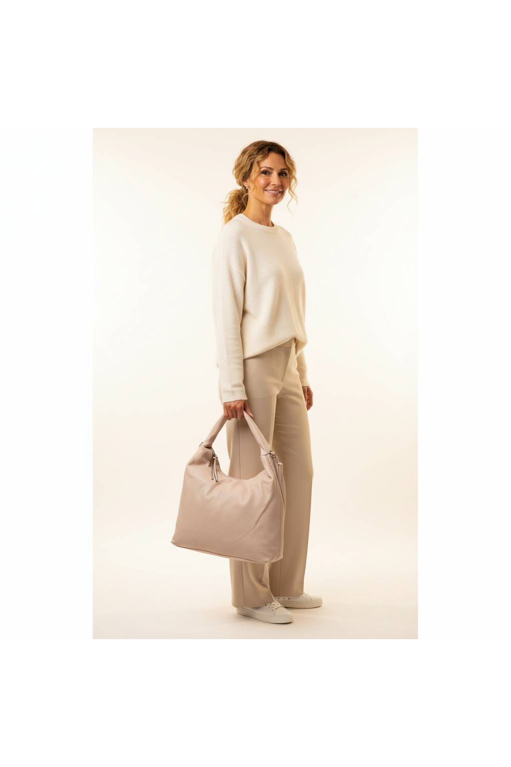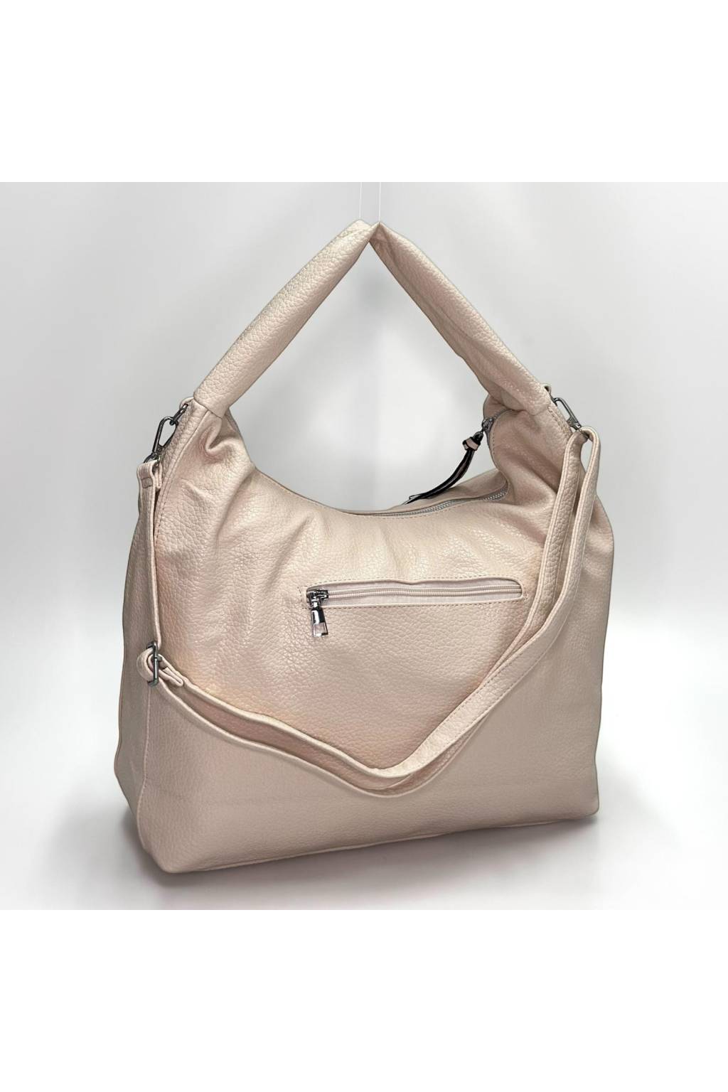Elegantní a prostorná kabelka na každý den, která spojuje měkký hobo střih s objemem shopperu. Široké ramenní ucho výborně sedí na rameni a odnímatelný nastavitelný popruh umožní nosit i crossbody. Vnější kapsa na zip pro rychlý přístup k mobilu/klíčům, uvnitř přehledný 3-komorový prostor se zipovým dělítkem a kapsami na drobnosti. Nadčasový design ve více barevných variantách do práce, na nákupy i volný čas.