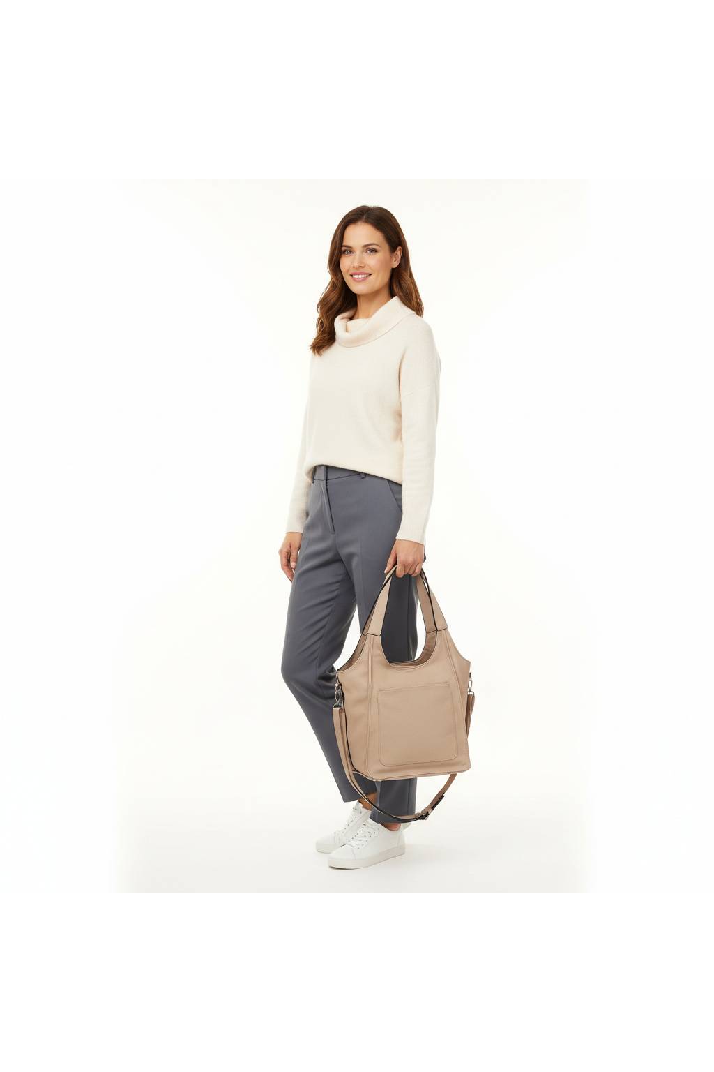 Tento model ocení ženy, které chtějí jednu kabelku „na všechno“ – dostatečně prostornou, ale stále elegantní. Vejde se peněženka, mobil, klíče, kosmetická taštička, diář i menší láhev.