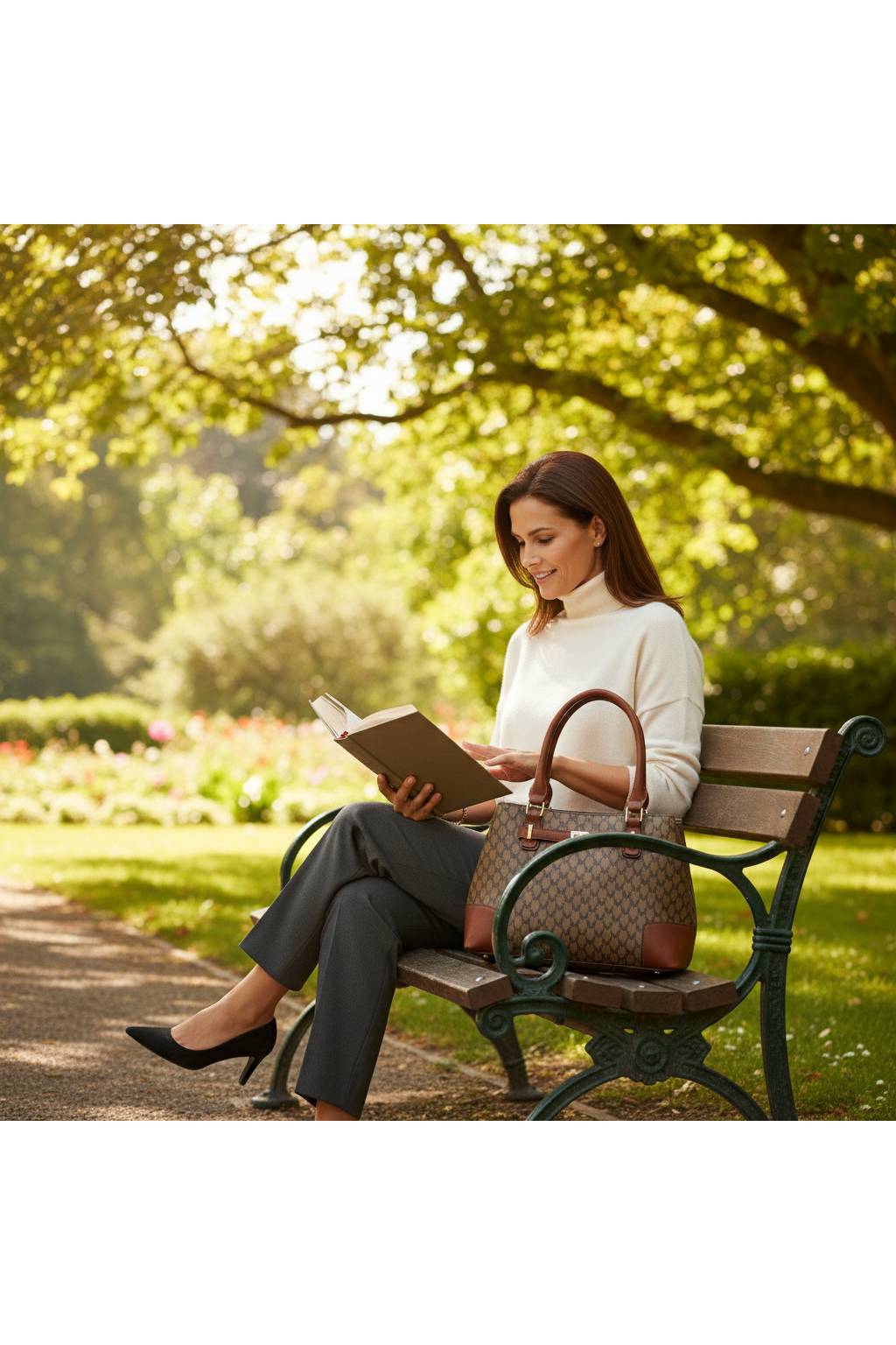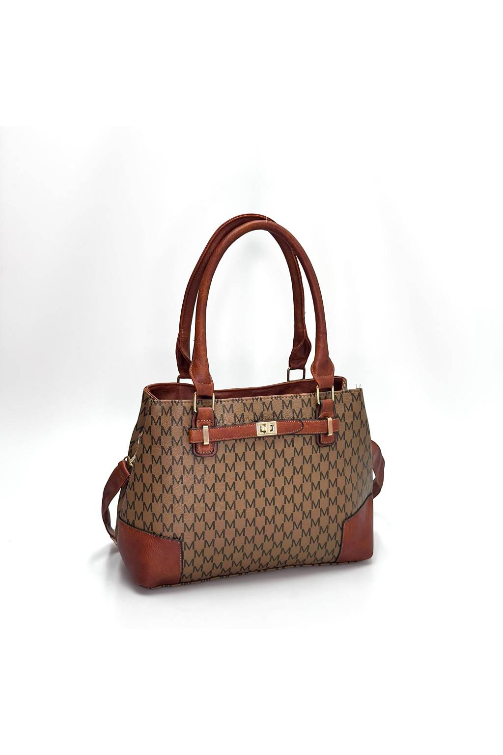Elegantní městská kabelka s jemným monogramovým vzorem a kontrastními detaily. Vhodná do práce, na nákupy i volný čas. Díky promyšlenému členění budete mít vše přehledně a bezpečně uložené.
