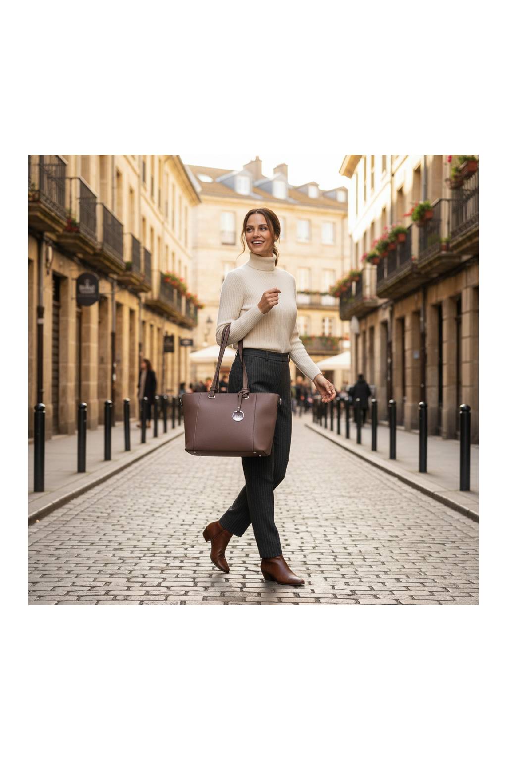 Elegantní, prostorná a spolehlivá. Tato dámská kabelka v nadčasovém „shopper“ stylu je ideální na každý den – do práce, do města i na cesty. Díky dlouhým uchům ji pohodlně dáte na rameno a když potřebujete volné ruce, připnete nastavitelný popruh a nosíte ji crossbody. Jemně strukturovaný povrch a kovové detaily dodávají kabelce luxusní vzhled, který skvěle ladí s jakýmkoli outfitem.