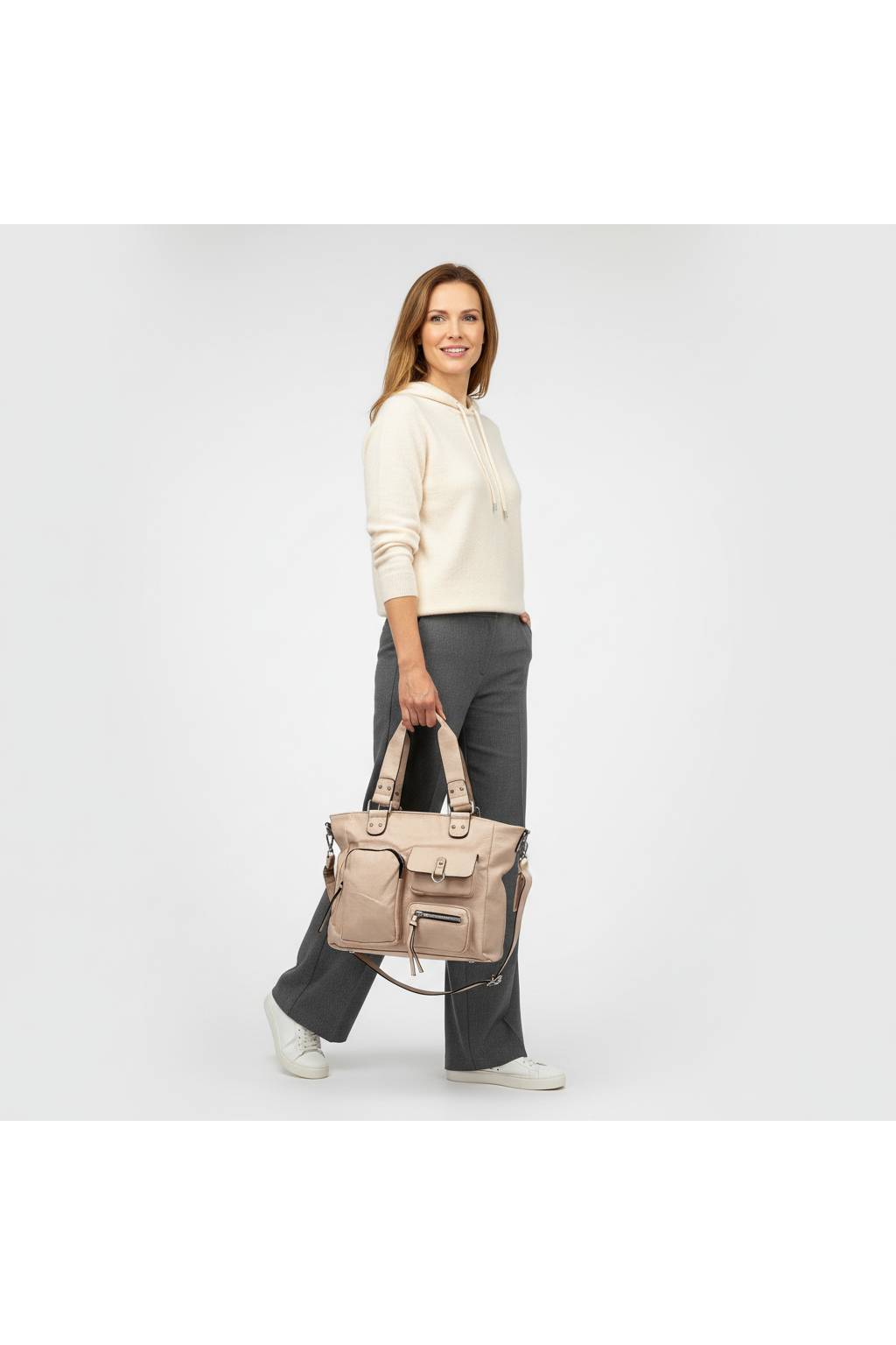 Praktická, elegantní a připravená na každý den. Tato dámská kabelka je ideální do práce, do města i na nákupy – nabídne dostatek prostoru, drží si pěkný tvar a díky chytrému členění budete mít ve věcech pořádek bez zbytečného hledání.