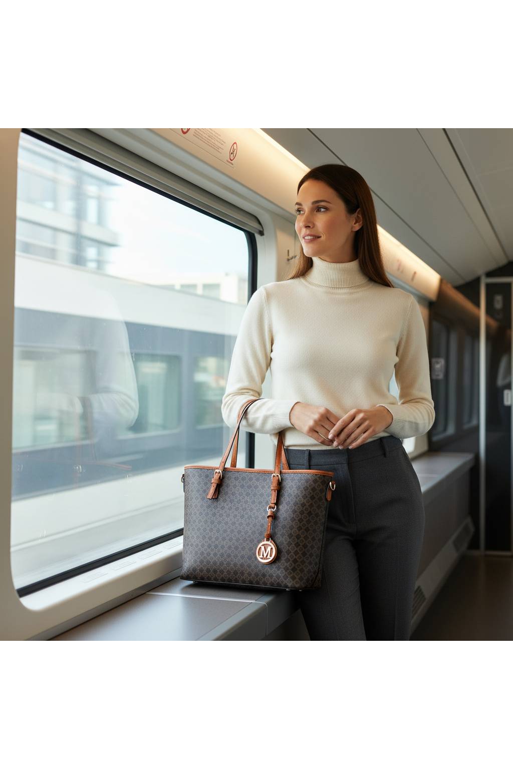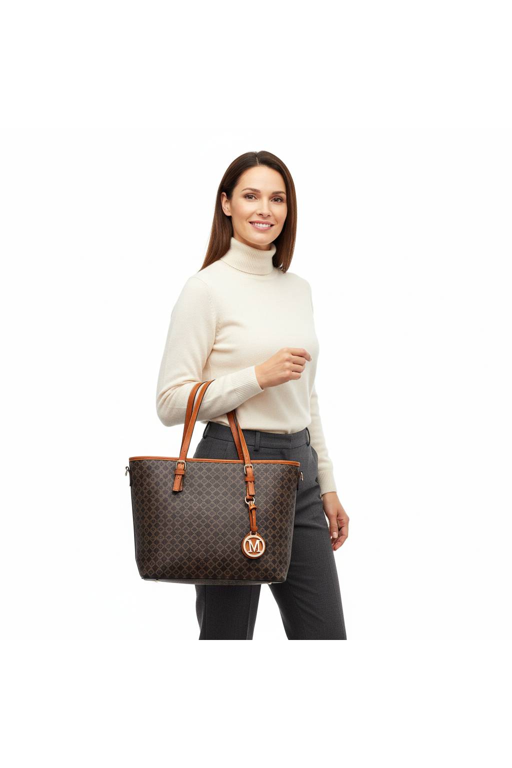 Elegantní shopper kabelka s jemným all-over vzorem a kontrastními uchy je stvořená na každý den – do práce, na nákupy i do města. Díky promyšlenému vnitřnímu členění udrží pořádek, působí upraveně a zároveň je příjemně lehká.