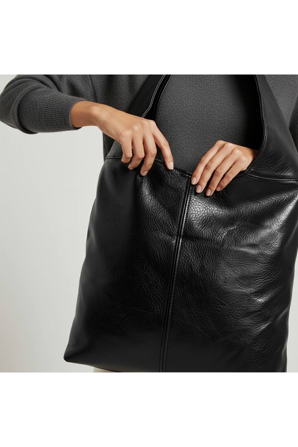 Ležérní hobo kabelka s měkkým tělem a širokým popruhem, která se krásně přizpůsobí postavě. Ideální na každý den – do práce, na nákupy i volný čas.
