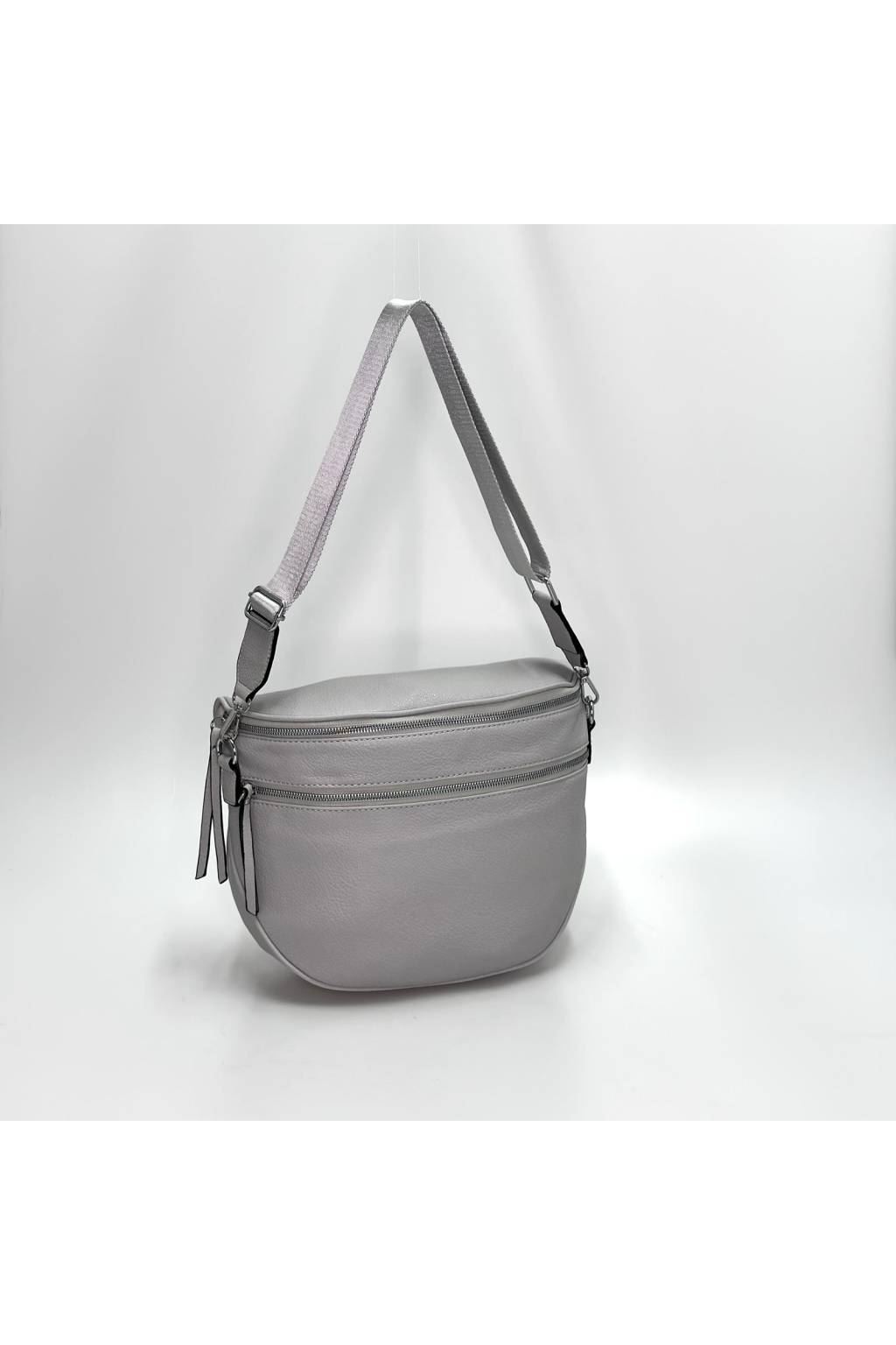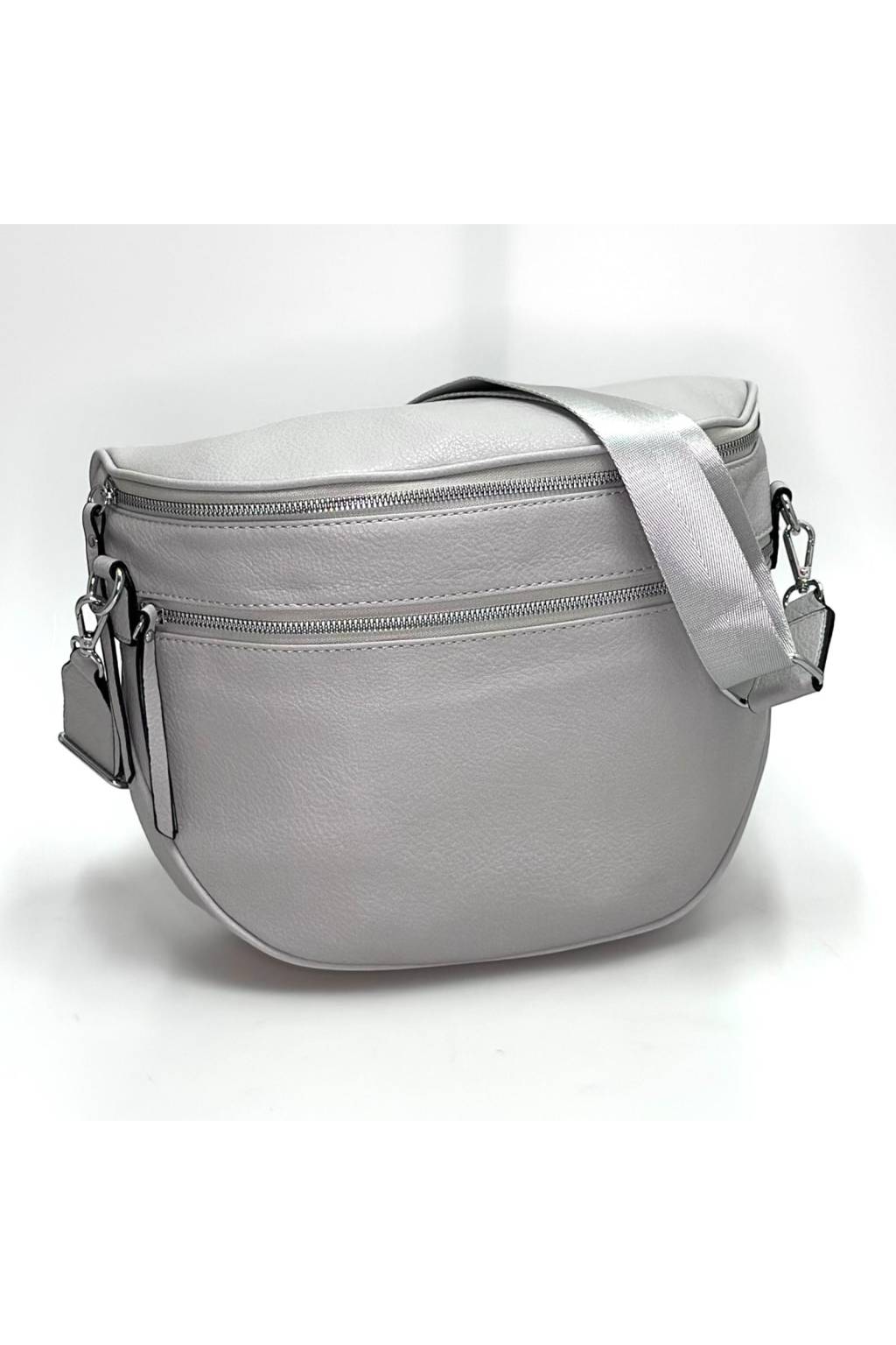 Trendy velká crossbody ledvinka s extra širokým nastavitelným popruhem. Měkká eko kůže, čisté linie a dvě výrazné zipové linie – ideální volba pro každý den i pro cestování.
